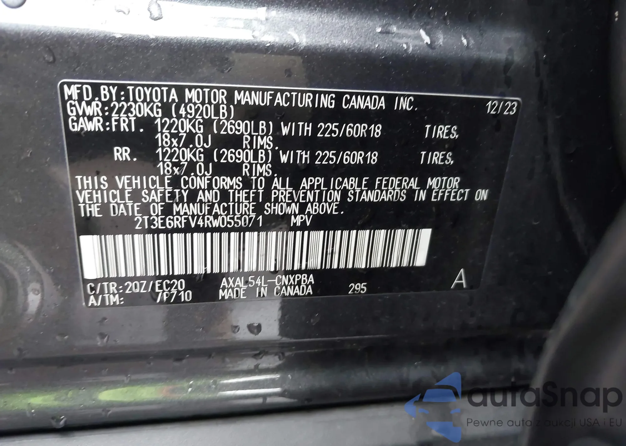 Samochód Toyota RAV 4 2024 (VIN 2T3E6RFV4RW055071) nie był wcześniej licytowany. Dokumenty są czyste, przebieg odpowiada lub jest niższy niż średnia rynku. Sprzedaje go firma ubezpieczeniowa – polecamy zakup. Dostawa do portu zajmie ok. 6–8 tygodni.