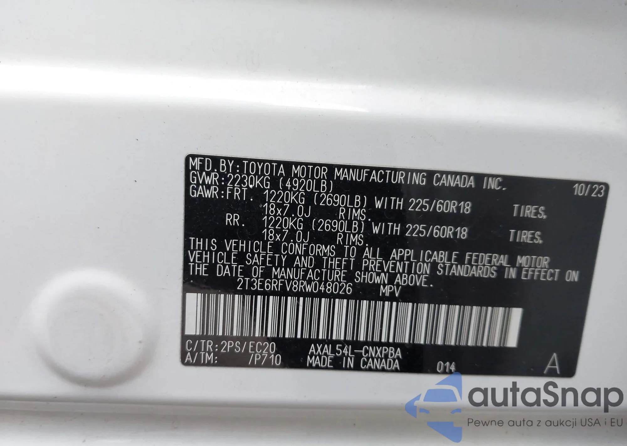 VIN: 2T3E6RFV8RW048026