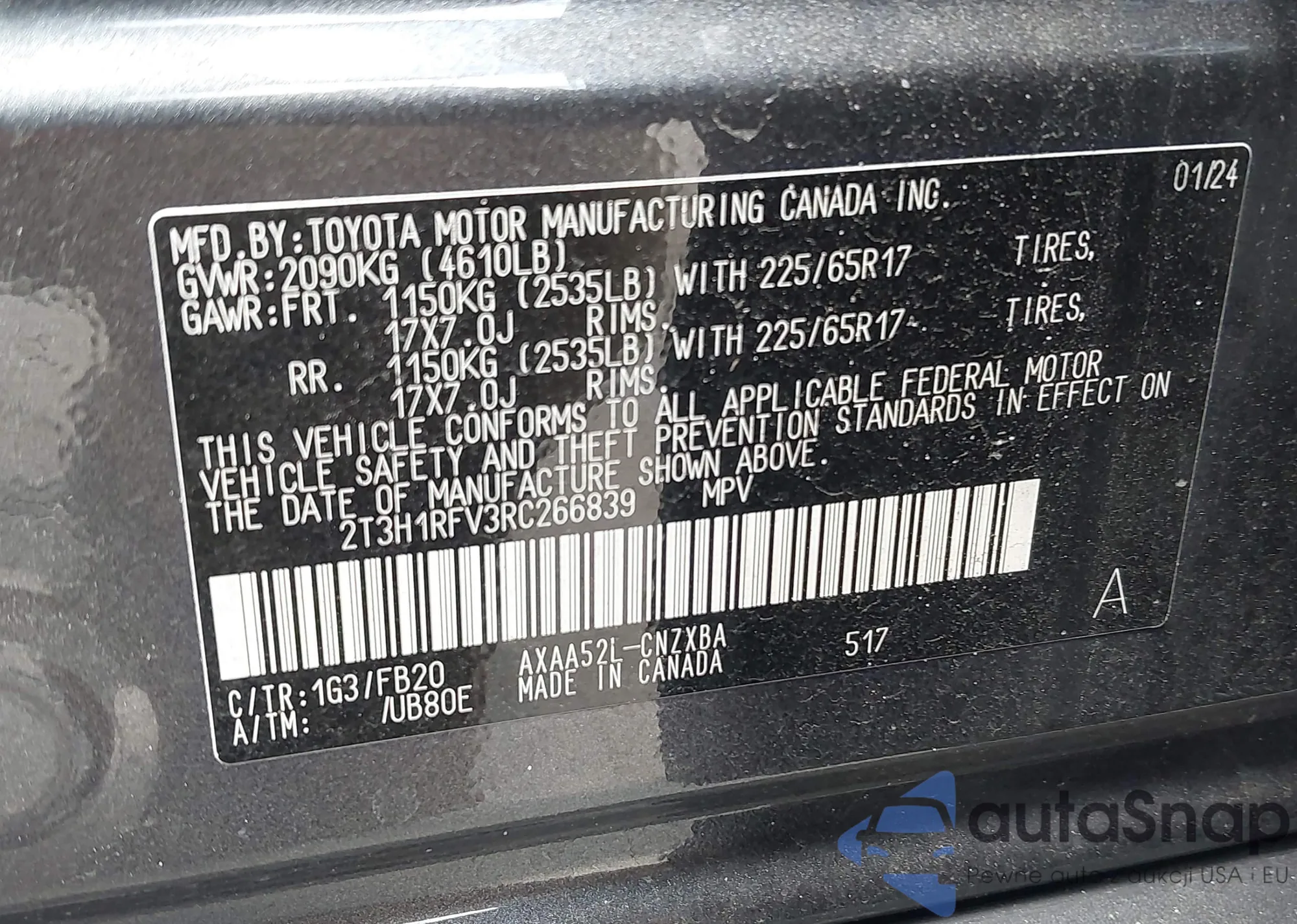 VIN: 2T3H1RFV3RC266839
