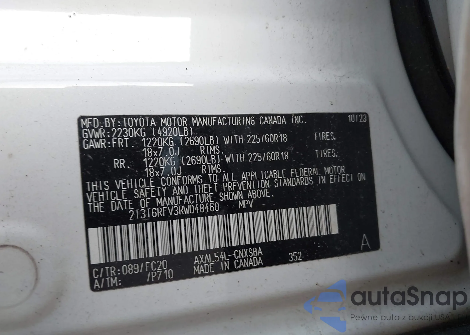 VIN: 2T3T6RFV3RW048460