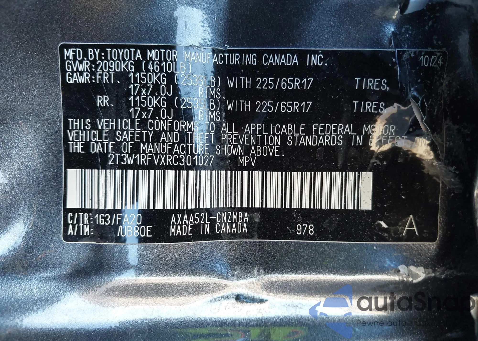 VIN: 2T3W1RFVXRC301027
