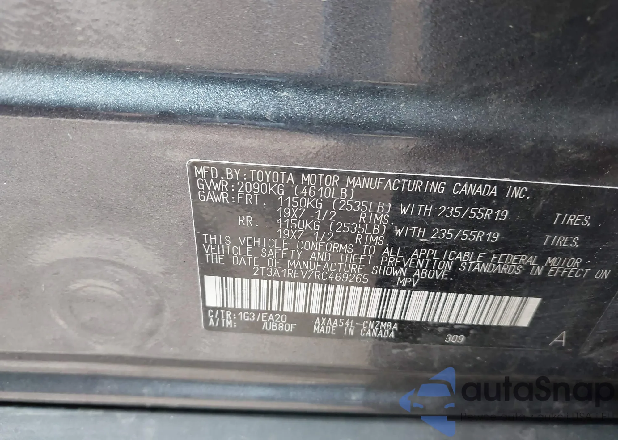 VIN: 2T3A1RFV7RC469265