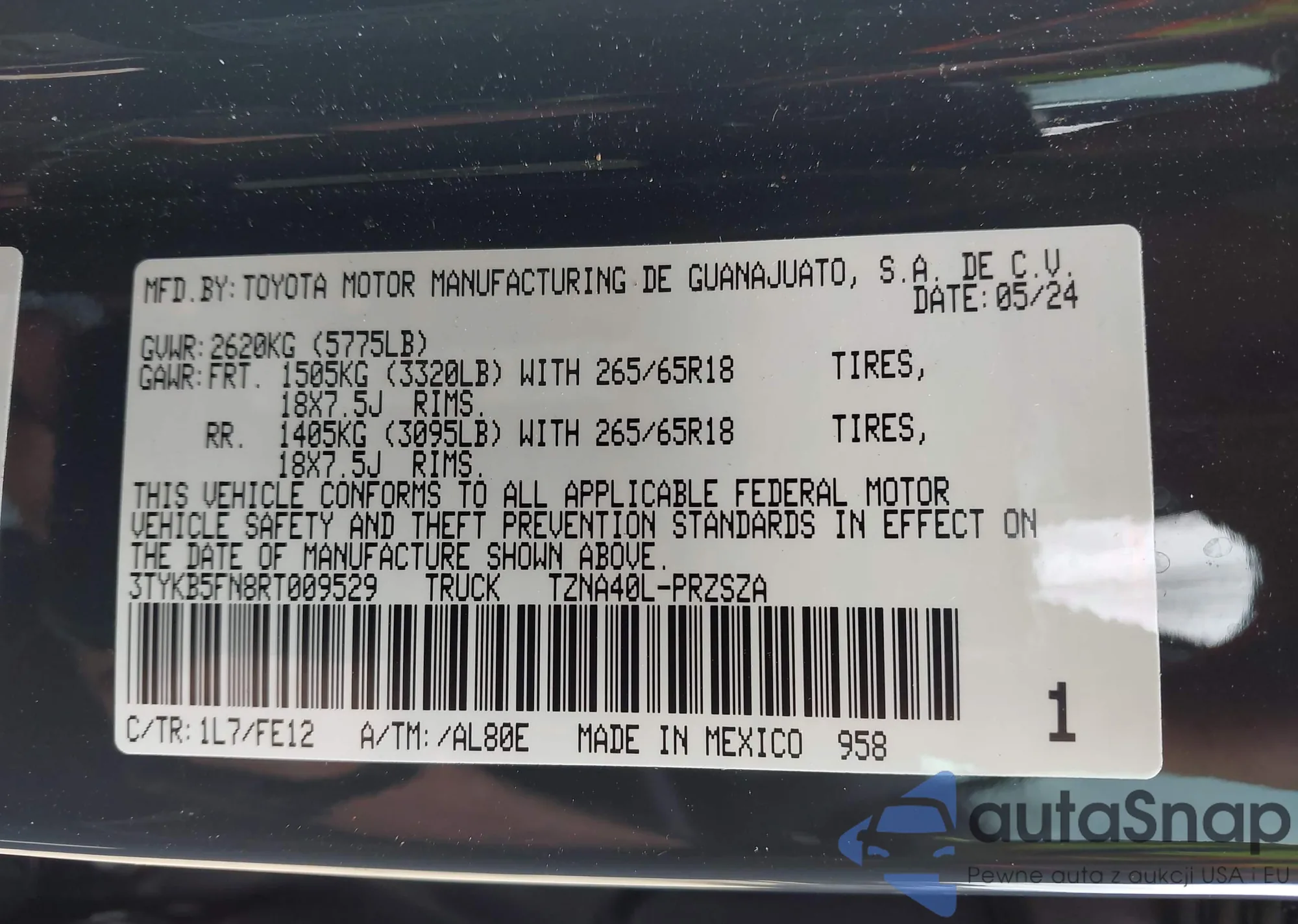 VIN: 3TYKB5FN8RT009529