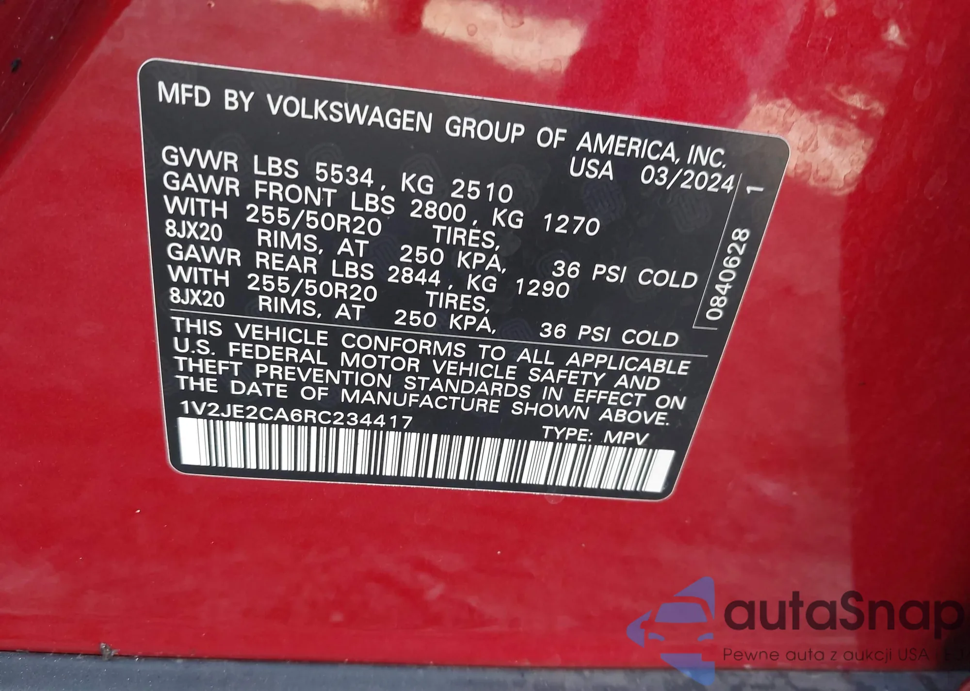 • VIN: 1V2JE2CA6RC234417