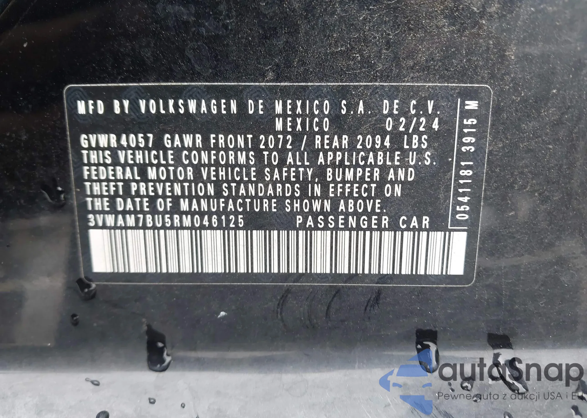 VIN: 3VWAM7BU5RM046125