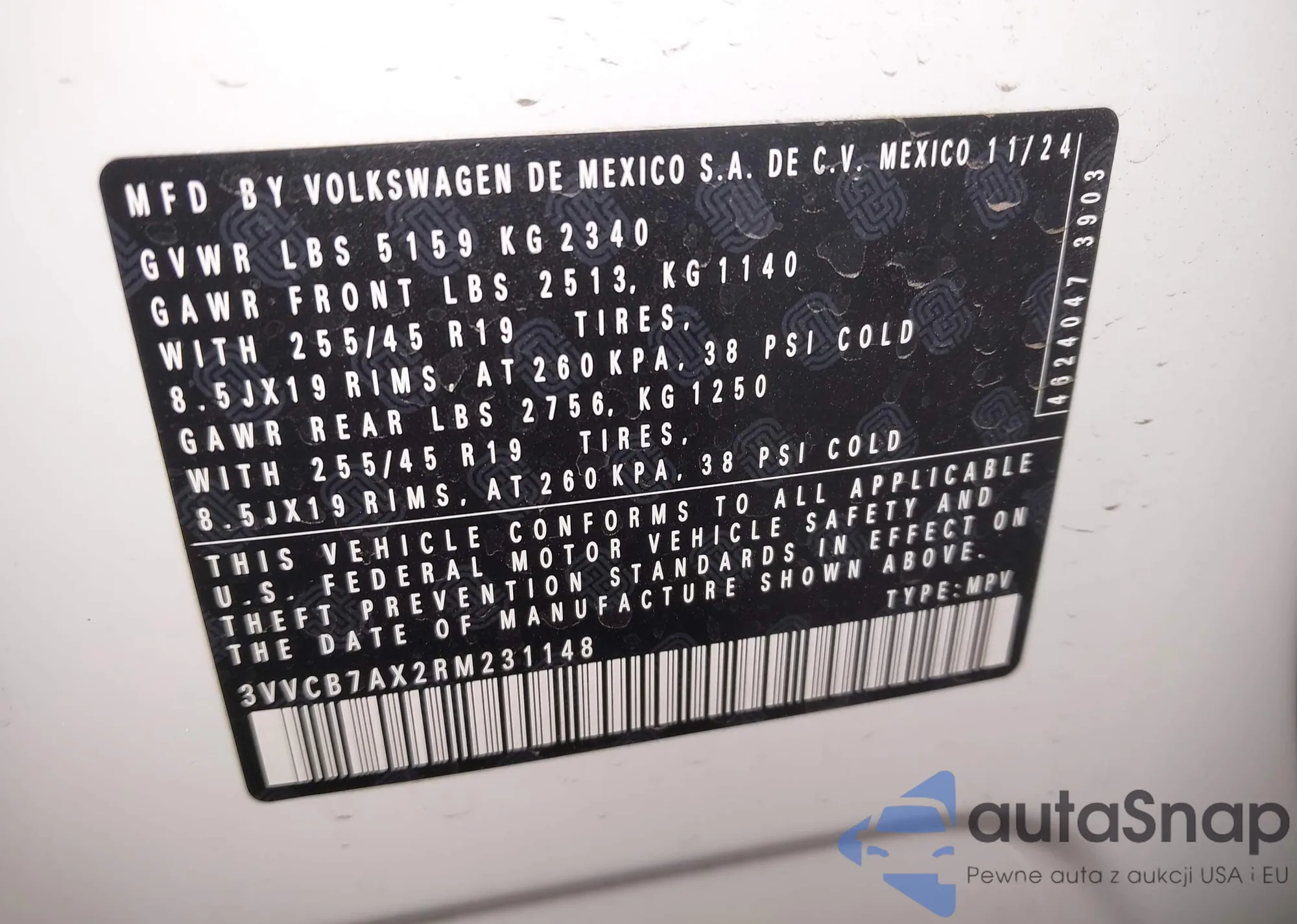 VIN: 3VVCB7AX2RM231148