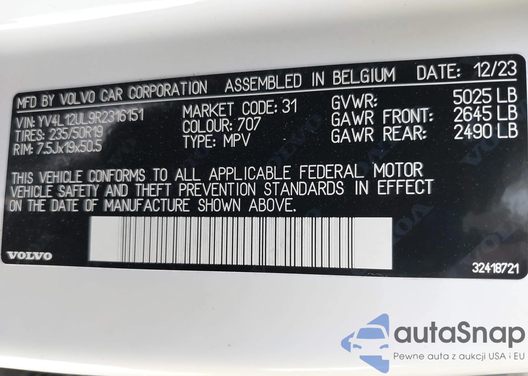 Samochód Volvo XC40 2024 (VIN YV4L12UL9R2316151) ma dokumenty uniemożliwiające rejestrację. Mogą pojawić się trudności przy eksporcie i rejestracji. Skontaktuj się z ekspertami AutaSnap w celu znalezienia alternatywy.