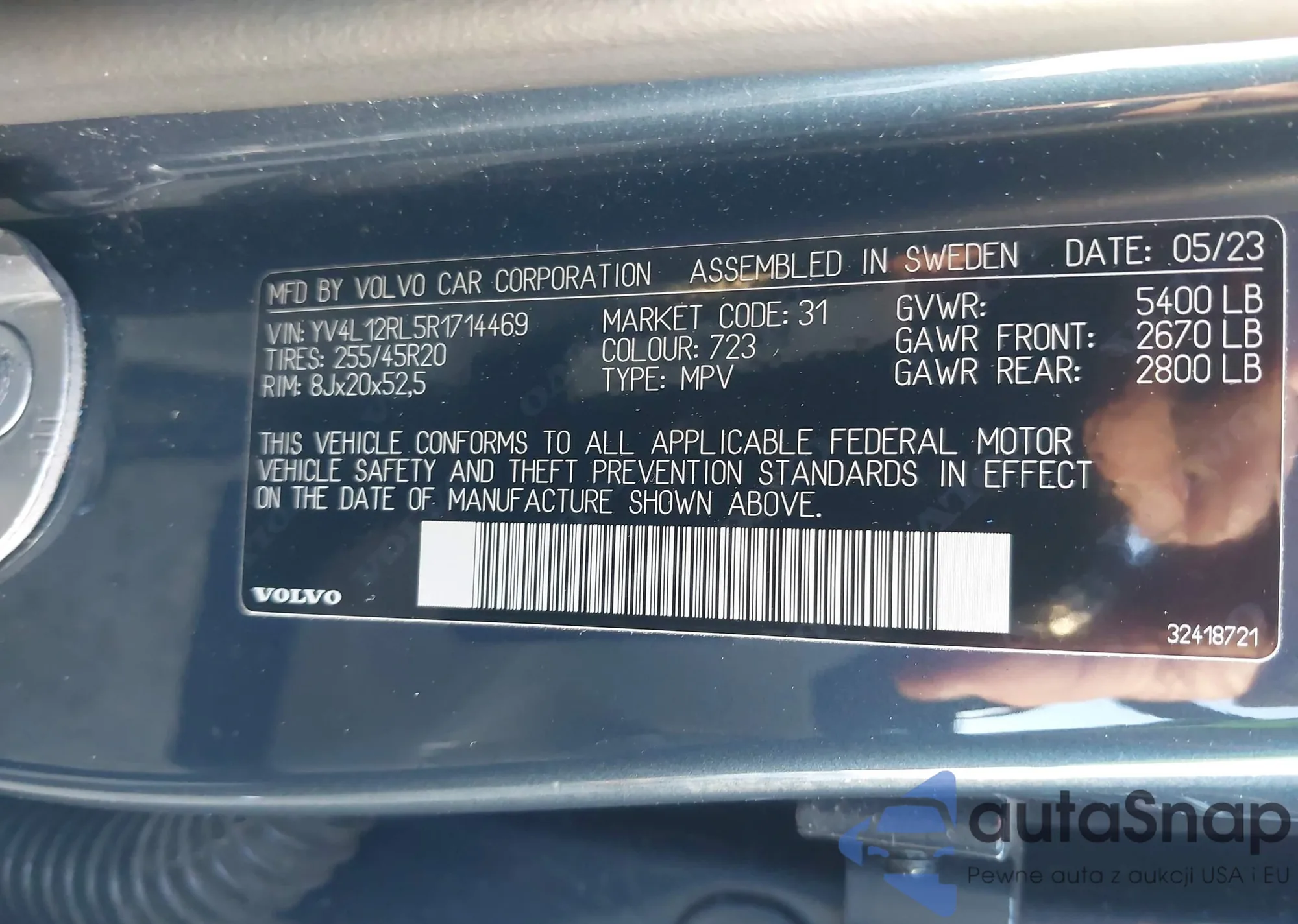 • VIN: YV4L12RL5R1714469