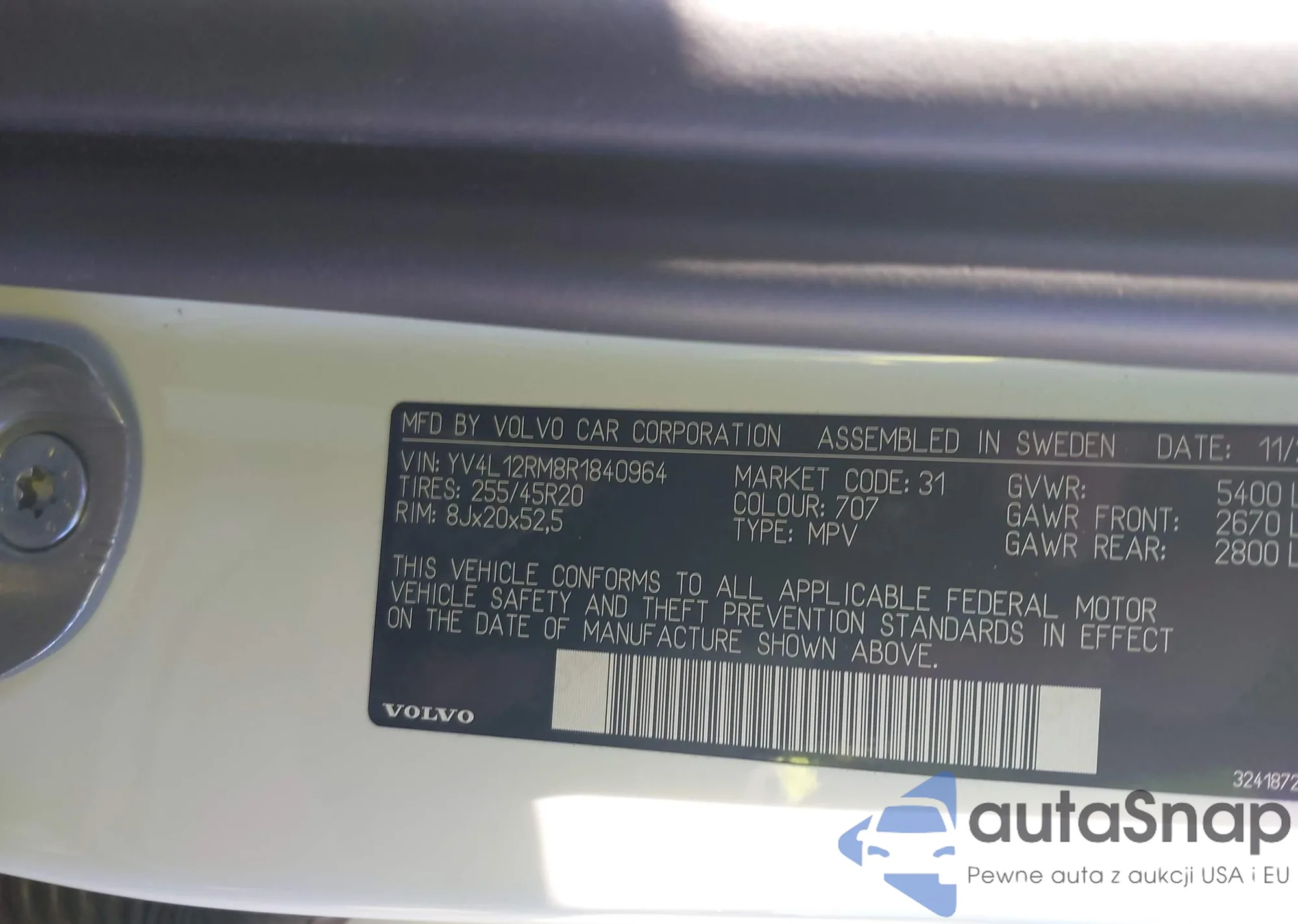 • VIN: YV4L12RM8R1840964