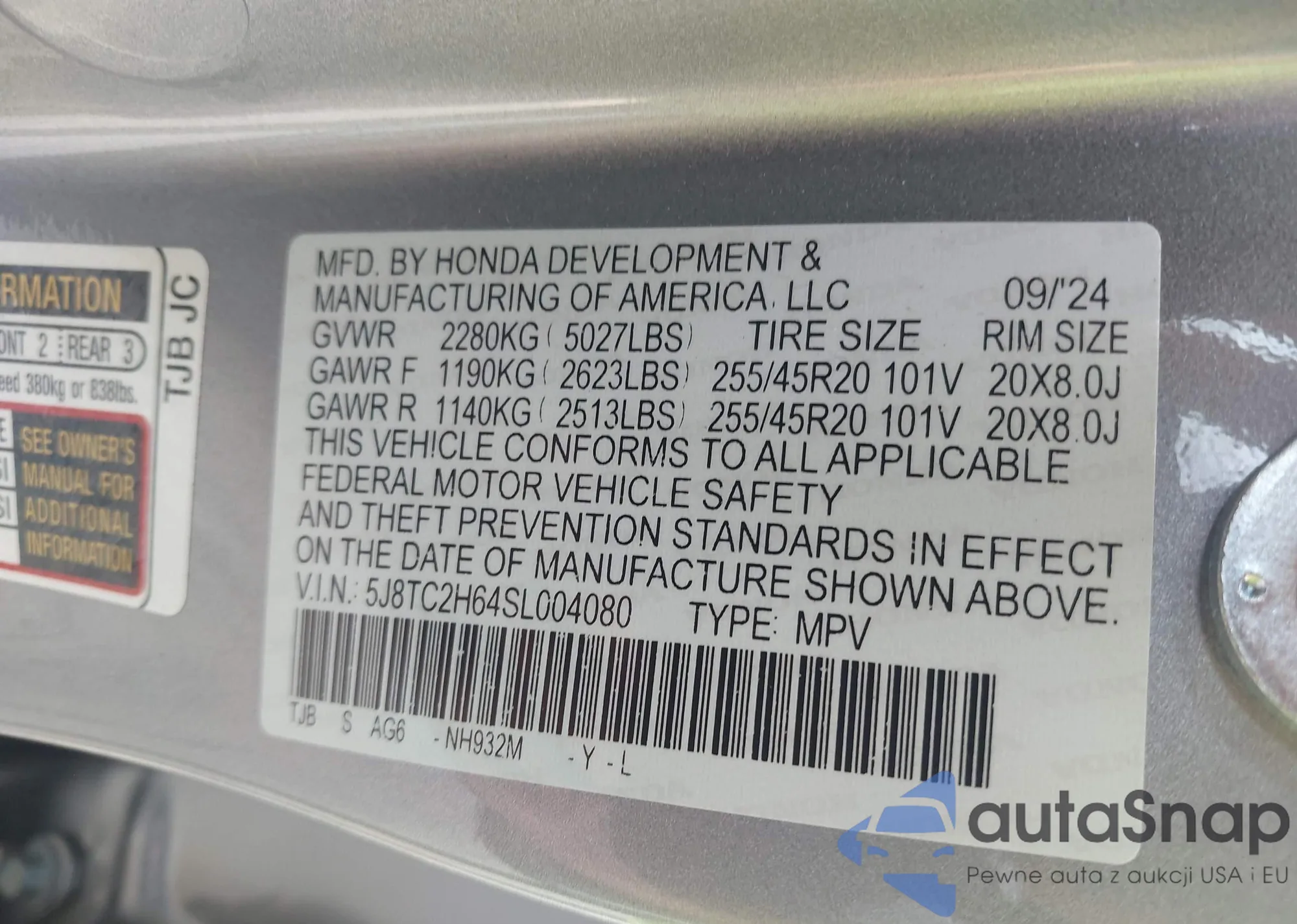 VIN: 5J8TC2H64SL004080