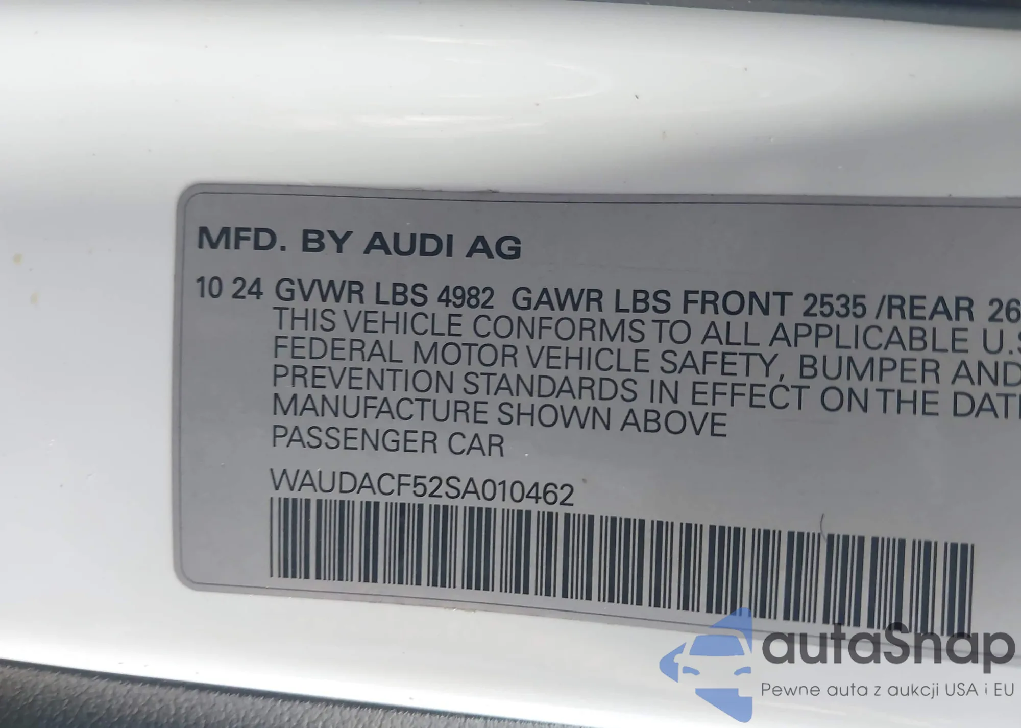 VIN: WAUDACF52SA010462
