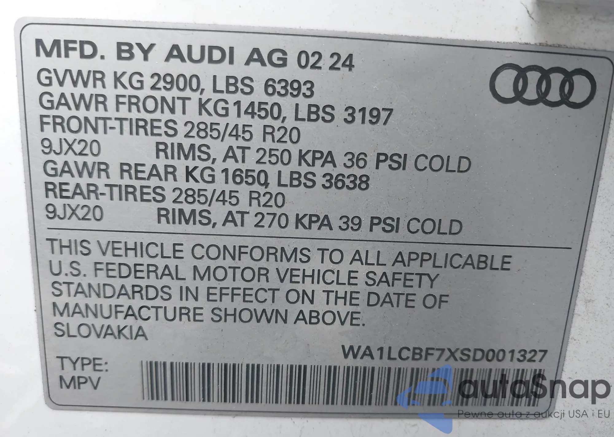 VIN: WA1LCBF7XSD001327