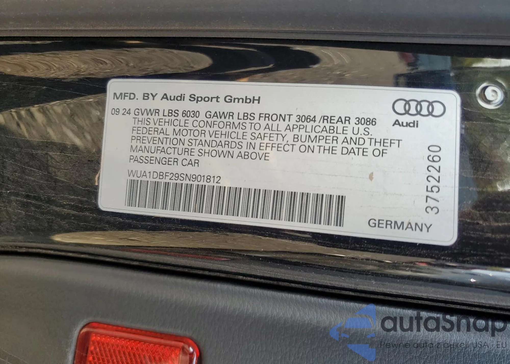 Samochód Audi RS6 2025 (VIN WUA1DBF29SN901812) ma dokumenty uniemożliwiające rejestrację. Mogą pojawić się trudności przy eksporcie i rejestracji. Skontaktuj się z ekspertami AutaSnap w celu znalezienia alternatywy.