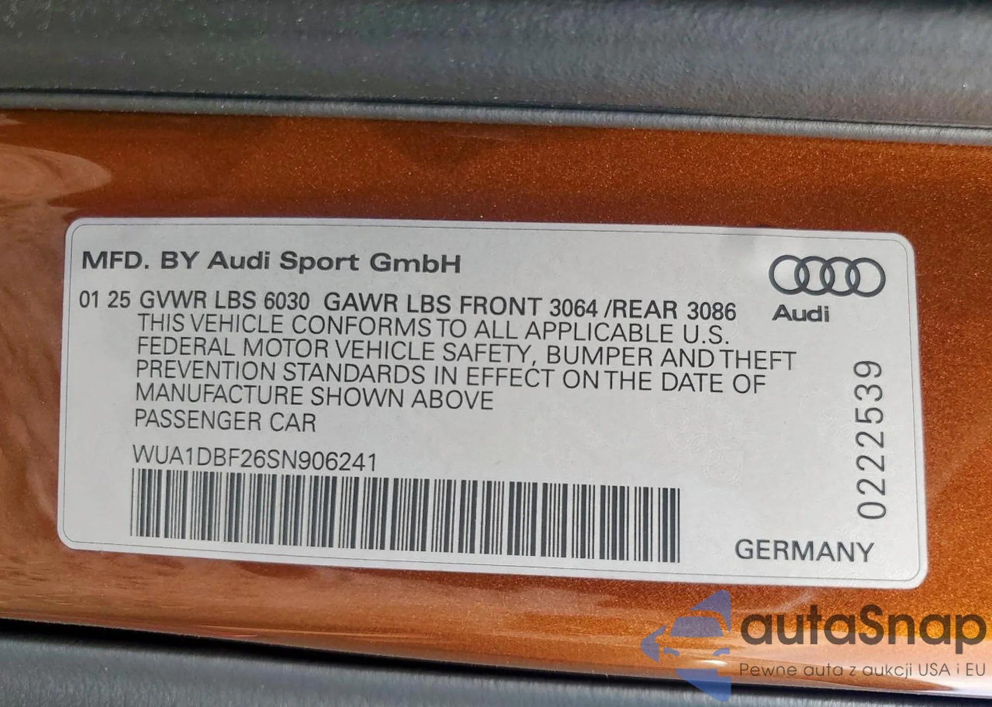 VIN: WUA1DBF26SN906241