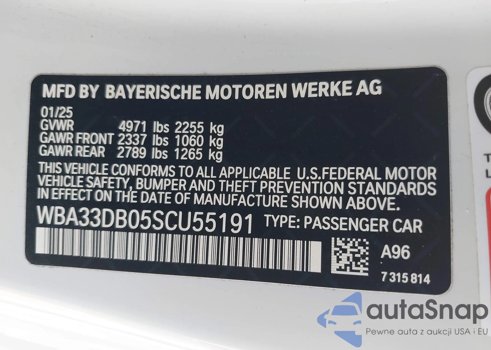 VIN: WBA33DB05SCU55191