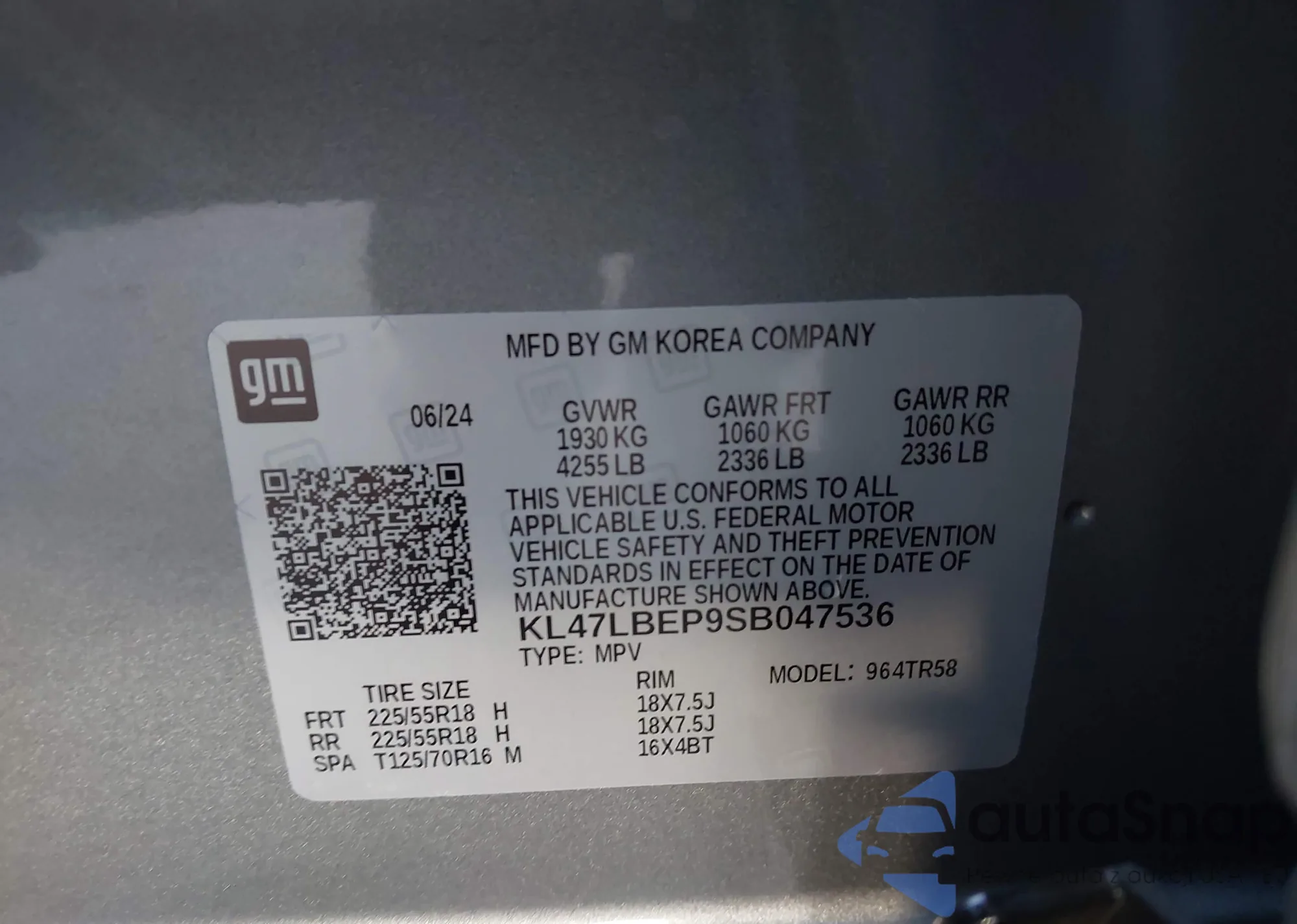 • VIN: KL47LBEP9SB047536