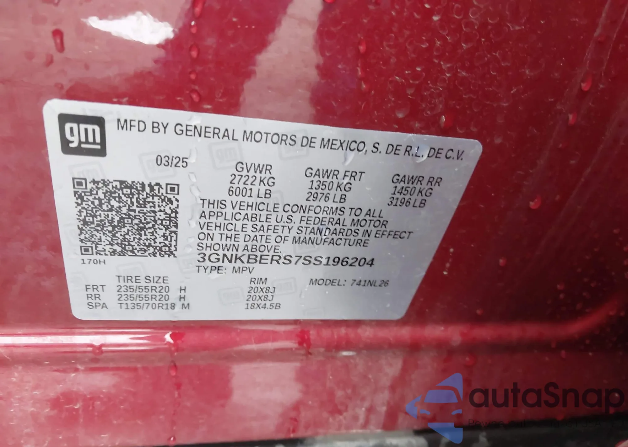 VIN: 3GNKBERS7SS196204
