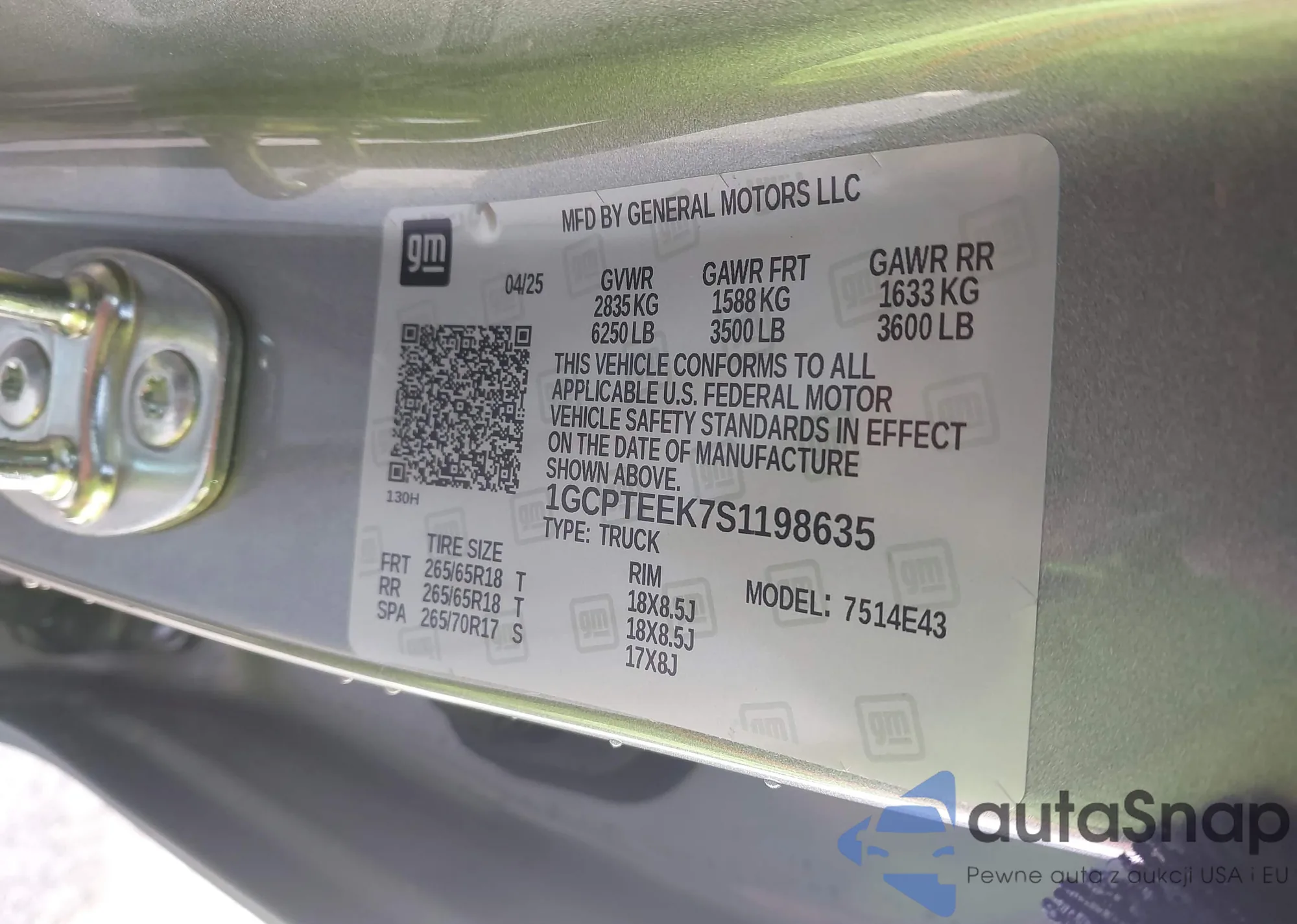 VIN: 1GCPTEEK7S1198635