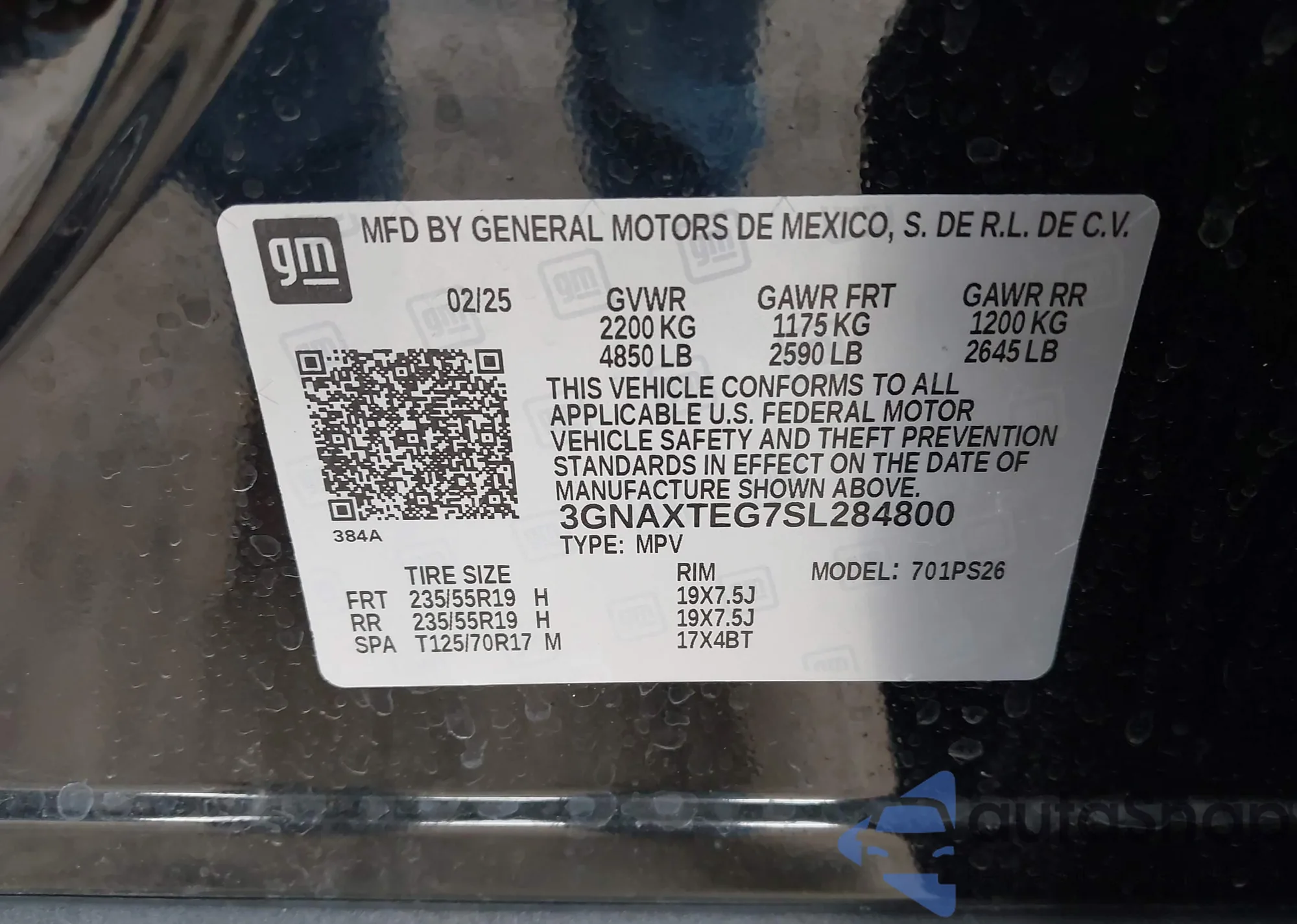 VIN: 3GNAXTEG7SL284800