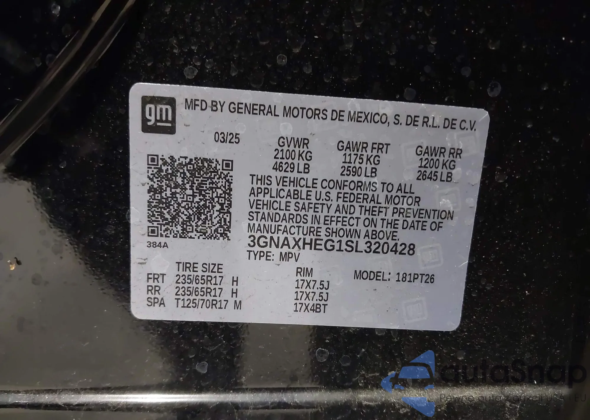VIN: 3GNAXHEG1SL320428