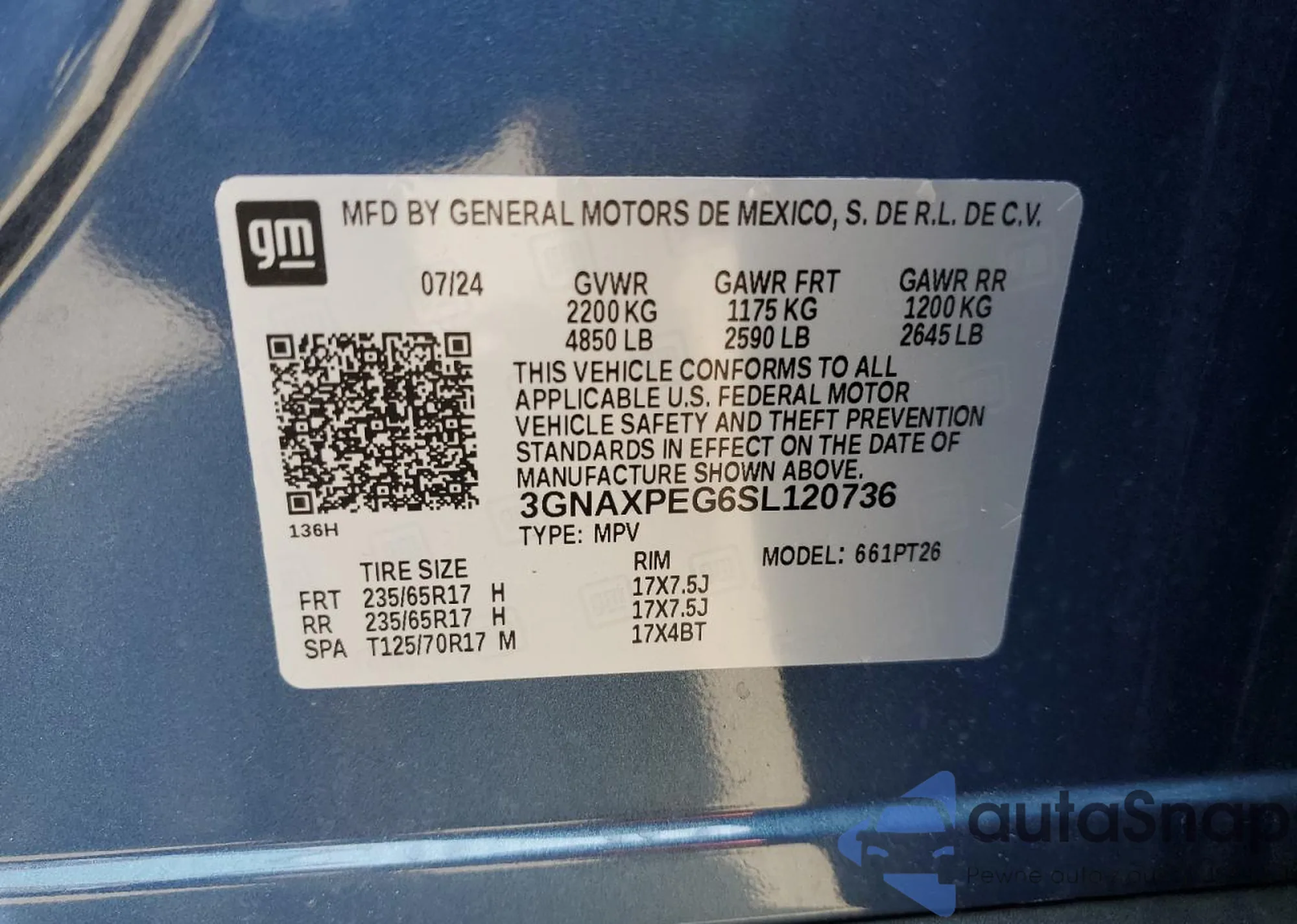 VIN: 3GNAXPEG6SL120736