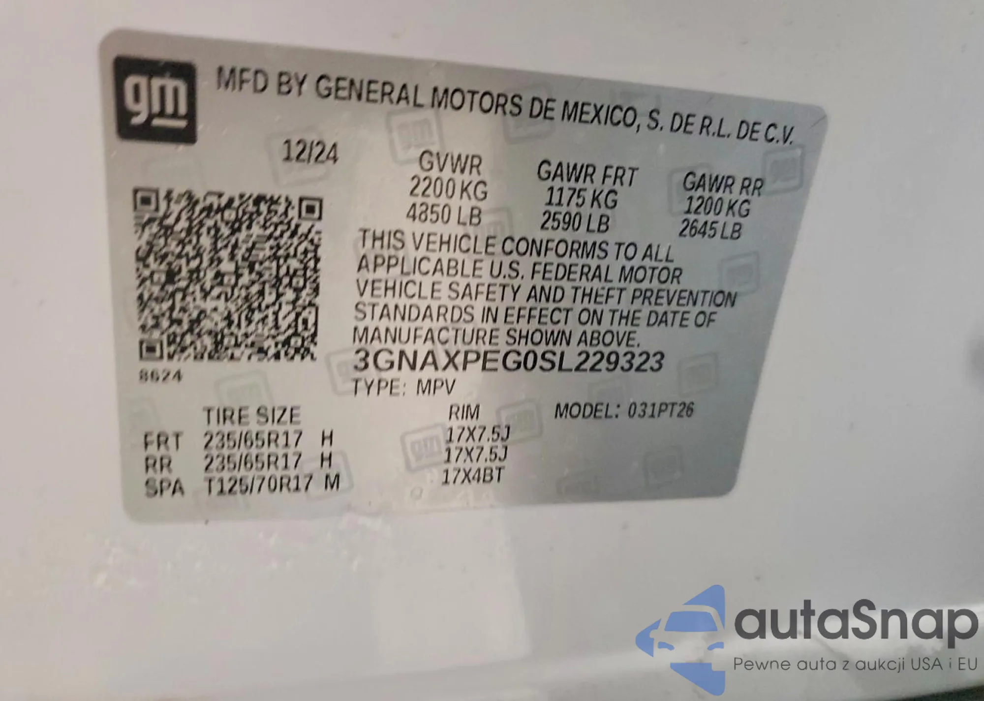 VIN: 3GNAXPEG0SL229323