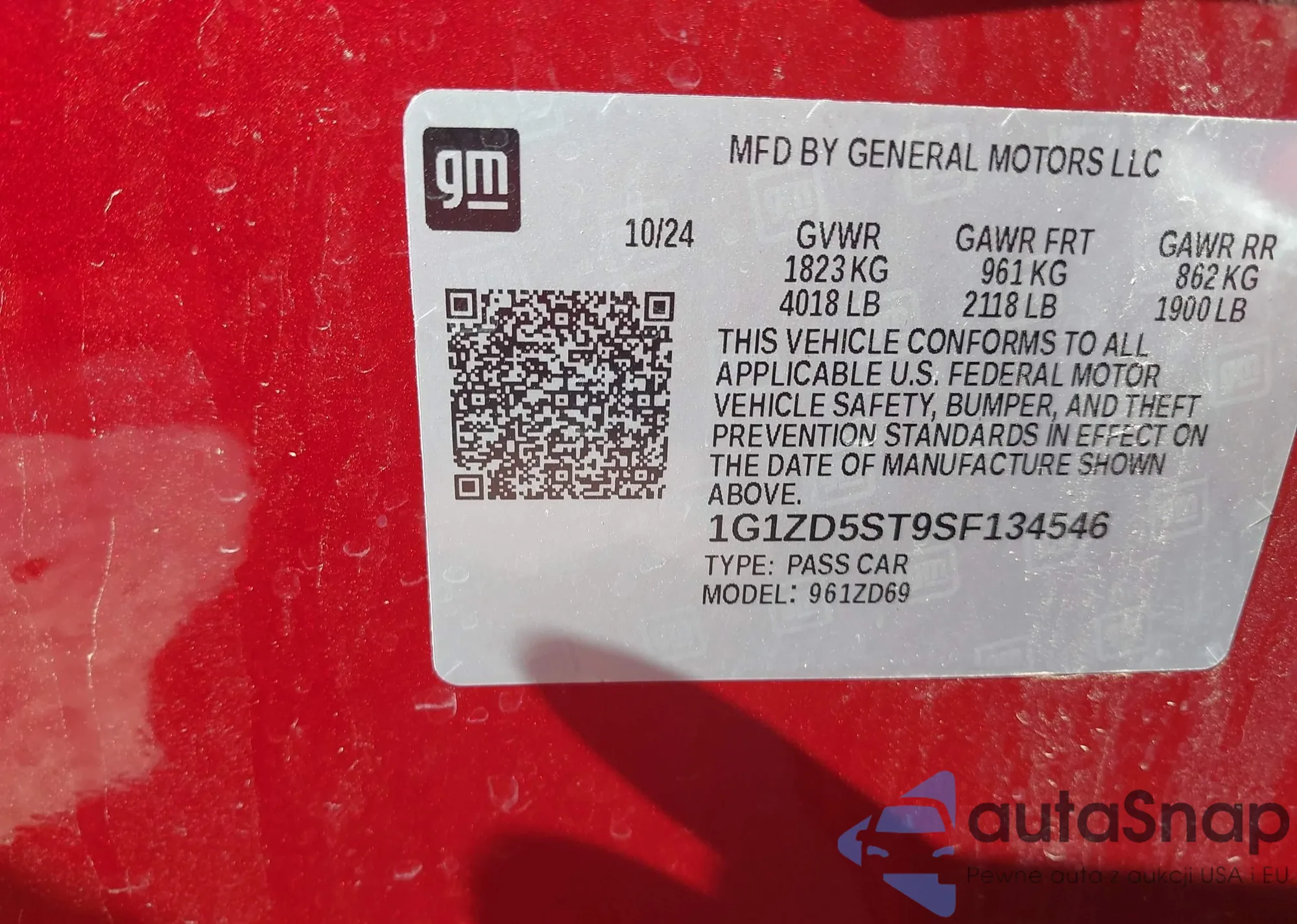 VIN: 1G1ZD5ST9SF134546