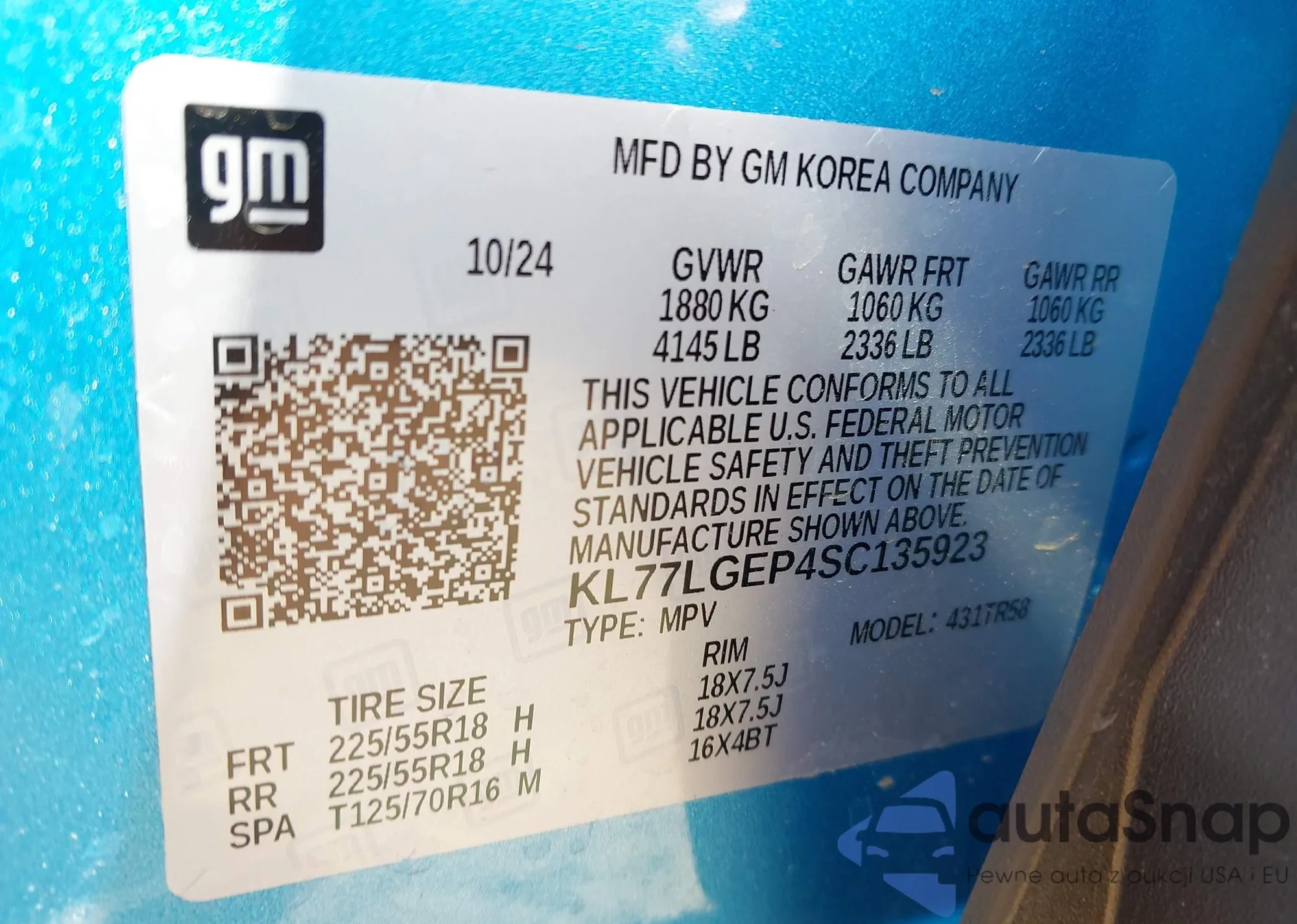VIN: KL77LGEP4SC135923