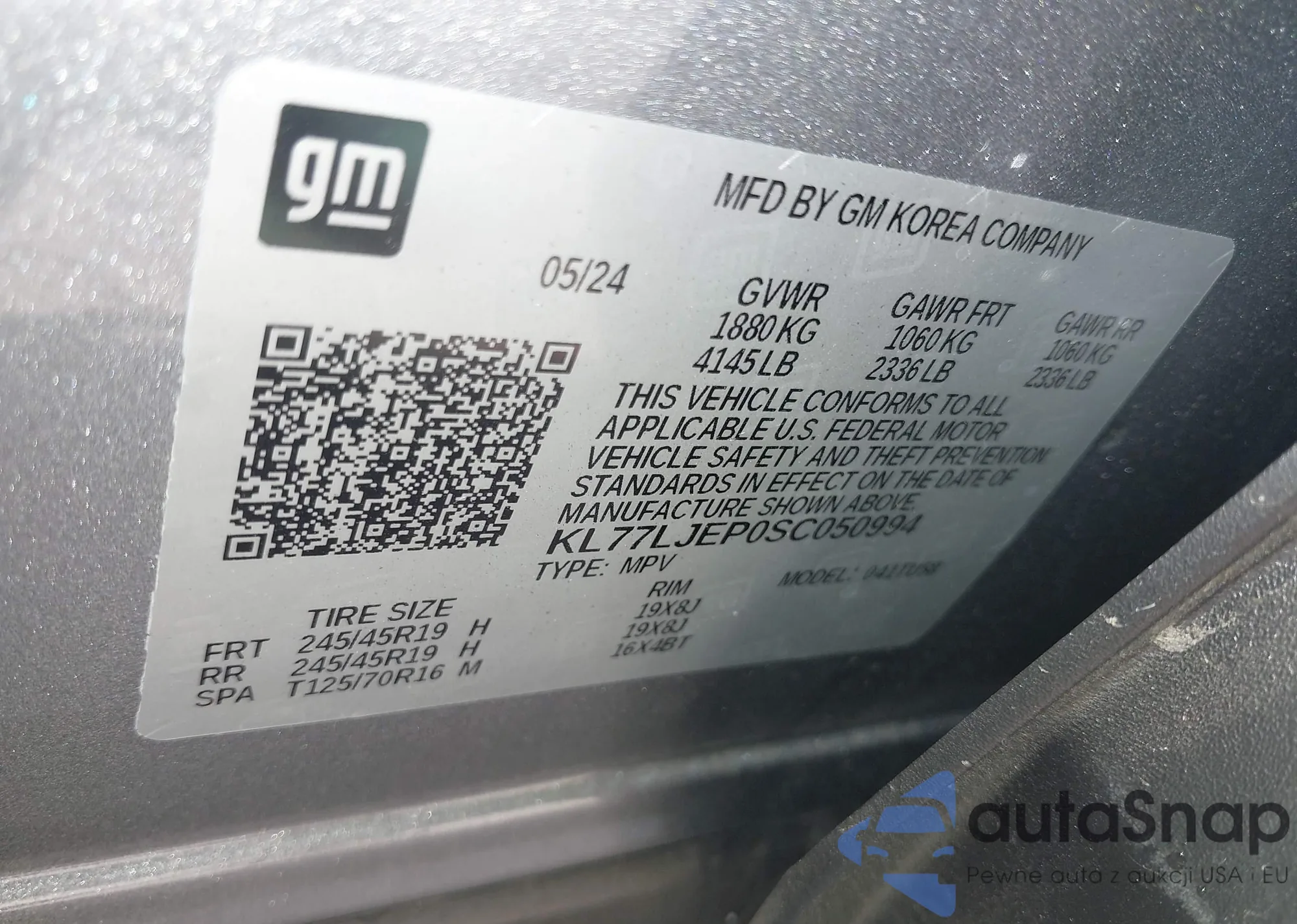 VIN: KL77LJEP0SC050994