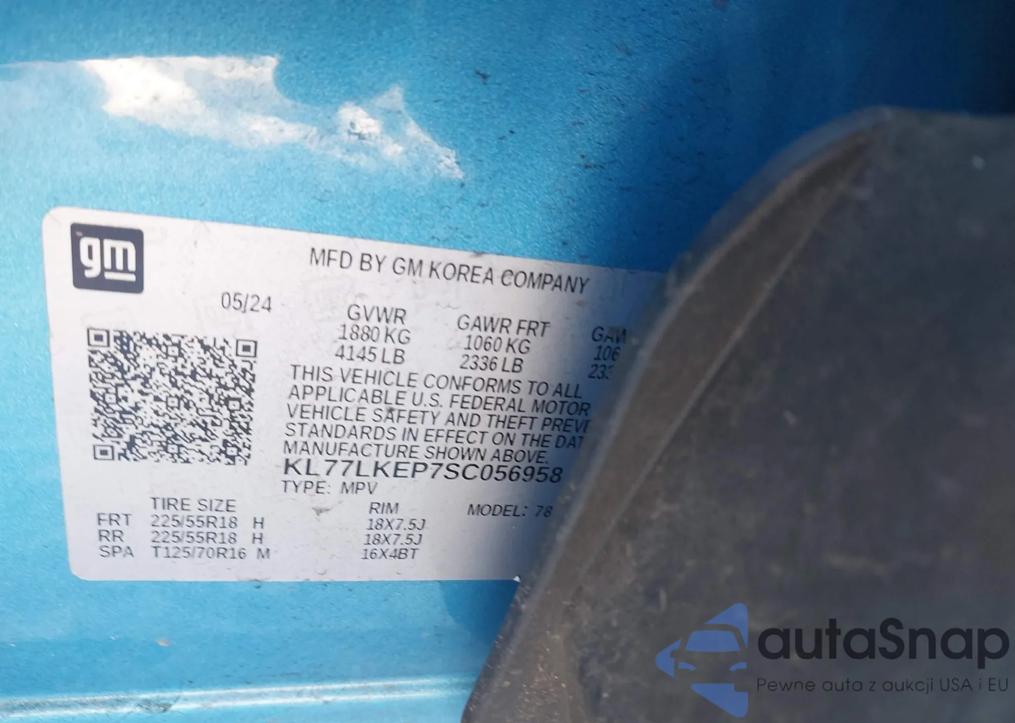 Samochód Chevrolet Trax 2025 (VIN KL77LKEP7SC056958) nie był wcześniej licytowany. Dokumenty są czyste, przebieg odpowiada lub jest niższy niż średnia rynku. Sprzedaje go firma ubezpieczeniowa – polecamy zakup. Dostawa do portu zajmie ok. 6–8 tygodni.