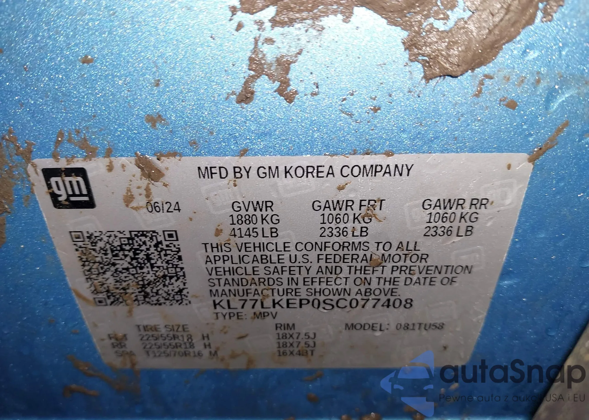 Samochód Chevrolet Trax 2025 (VIN KL77LKEP0SC077408) nie był wcześniej licytowany. Dokumenty są czyste, przebieg odpowiada lub jest niższy niż średnia rynku. Sprzedaje go firma ubezpieczeniowa – polecamy zakup. Dostawa do portu zajmie ok. 6–8 tygodni.