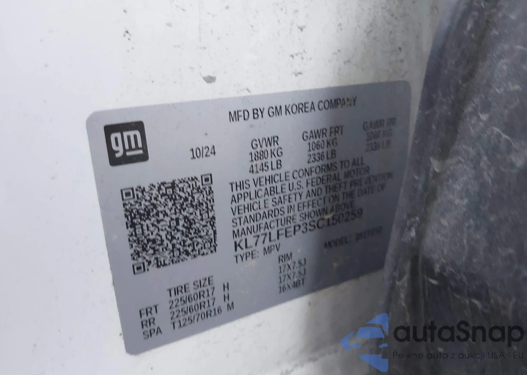 VIN: KL77LFEP3SC150259