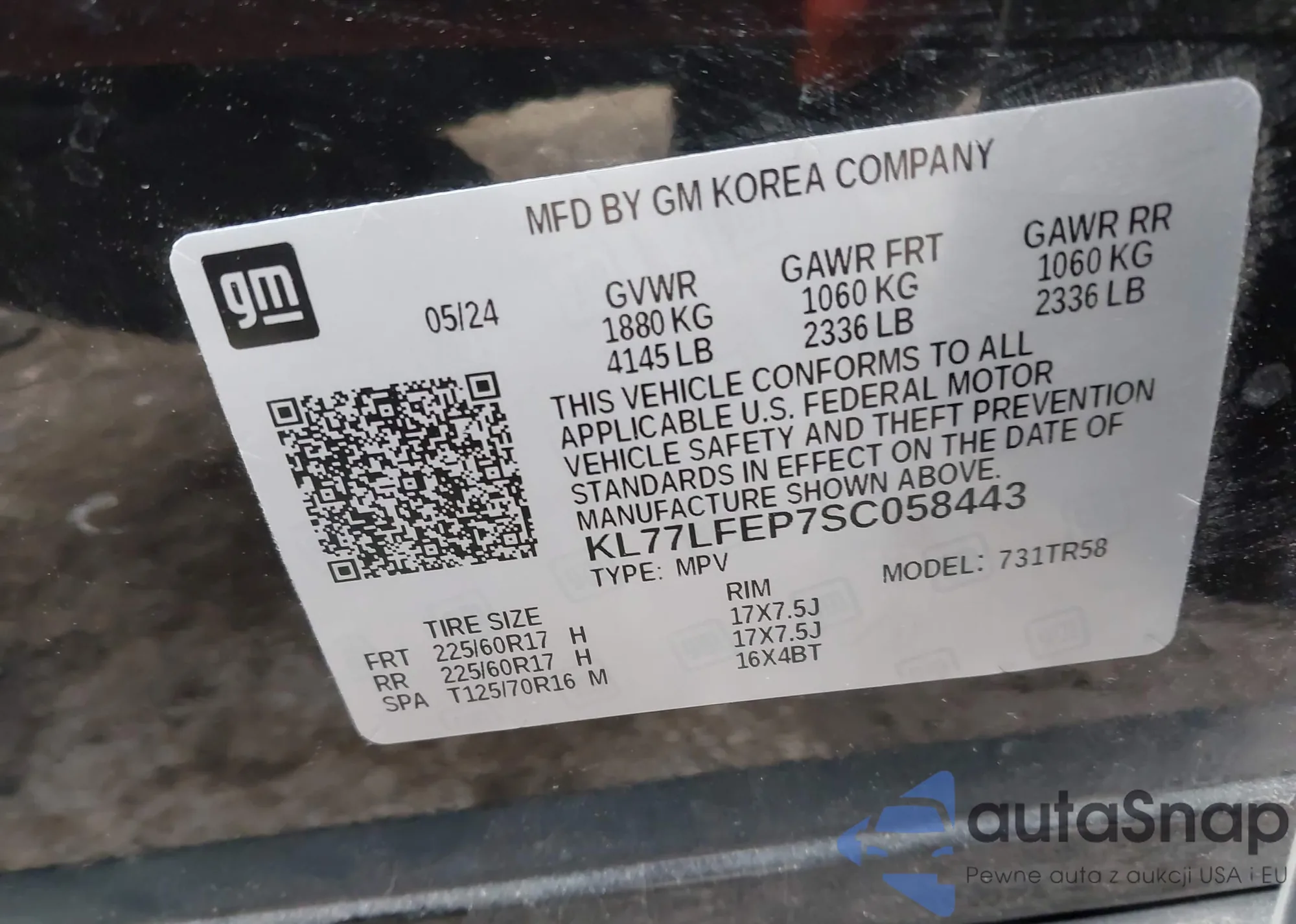 VIN: KL77LFEP7SC058443