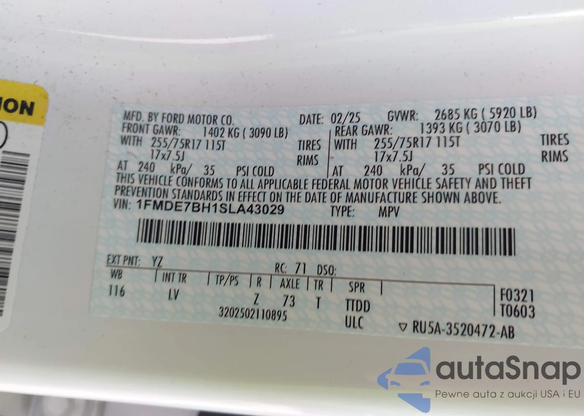 VIN: 1FMDE7BH1SLA43029