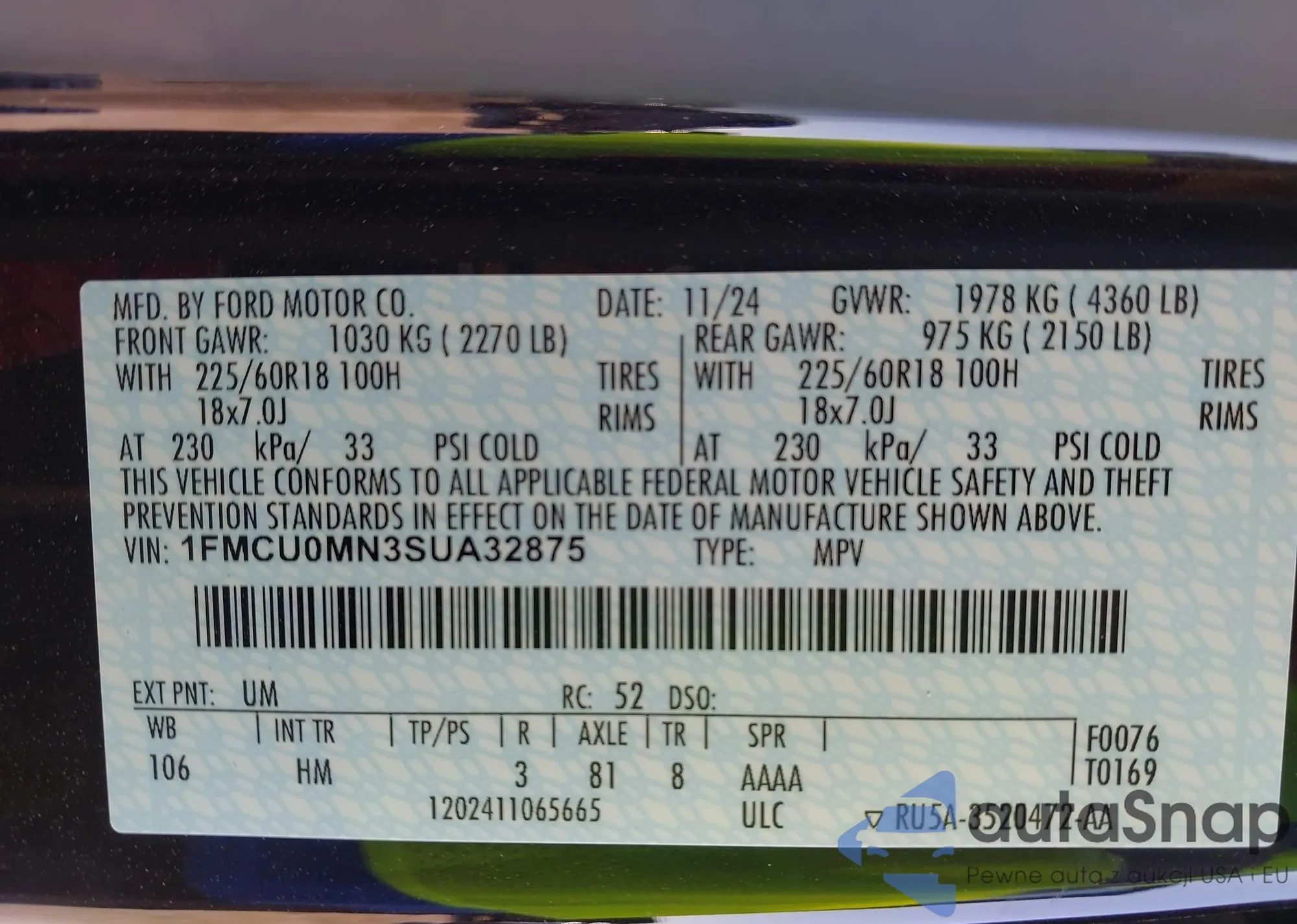 VIN: 1FMCU0MN3SUA32875