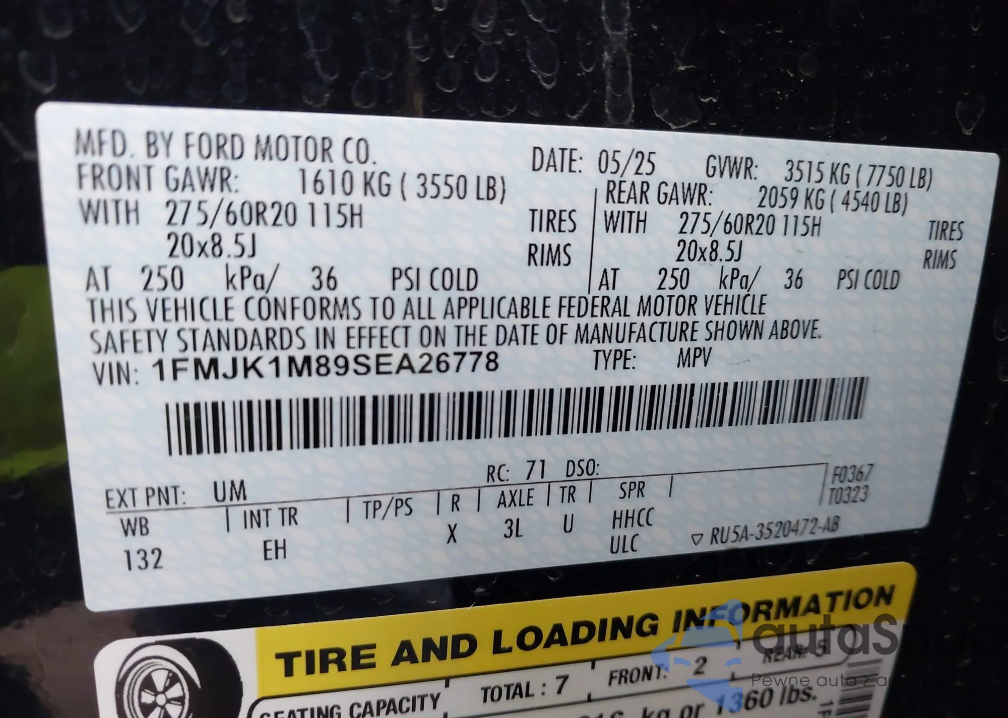 VIN: 1FMJK1M89SEA26778