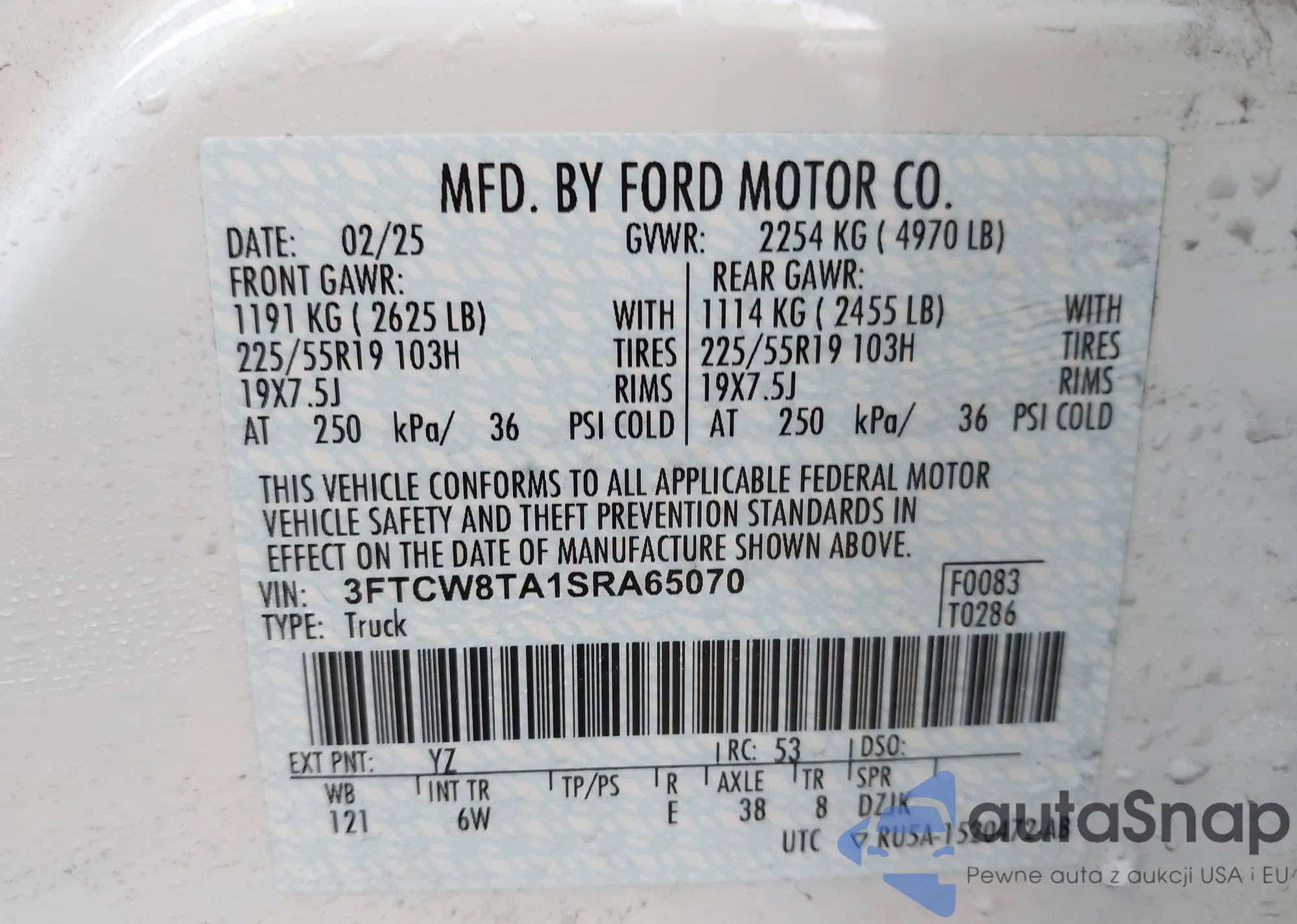 Samochód Ford Maverick 2025 (VIN 3FTCW8TA1SRA65070) nie był wcześniej licytowany. Dokumenty są czyste, przebieg odpowiada lub jest niższy niż średnia rynku. Sprzedaje go firma ubezpieczeniowa – polecamy zakup. Dostawa do portu zajmie ok. 6–8 tygodni.