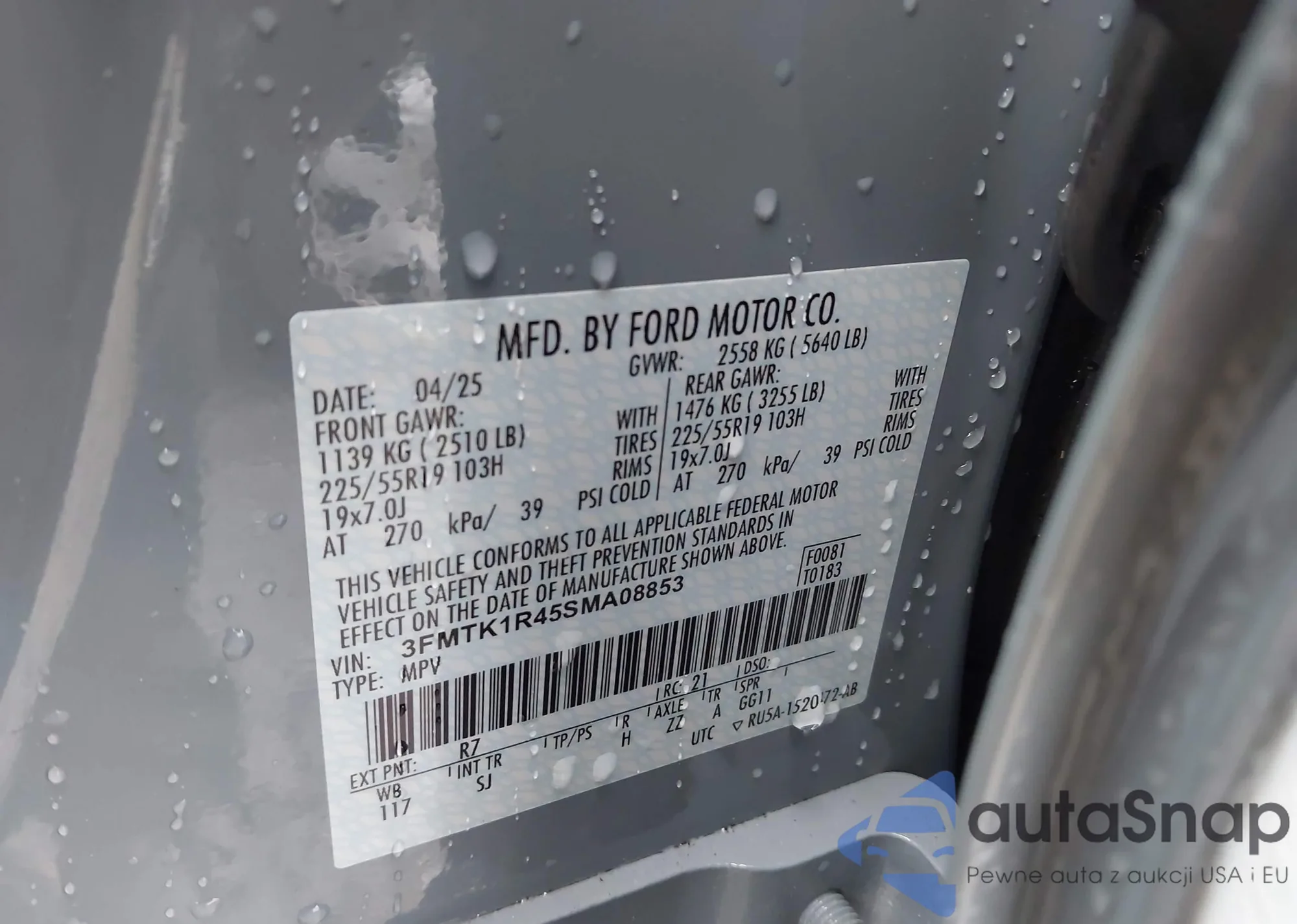 • VIN: 3FMTK1R45SMA08853