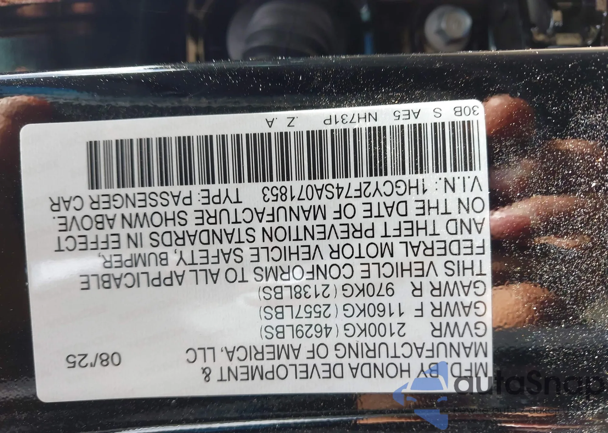 VIN: 1HGCY2F74SA071853