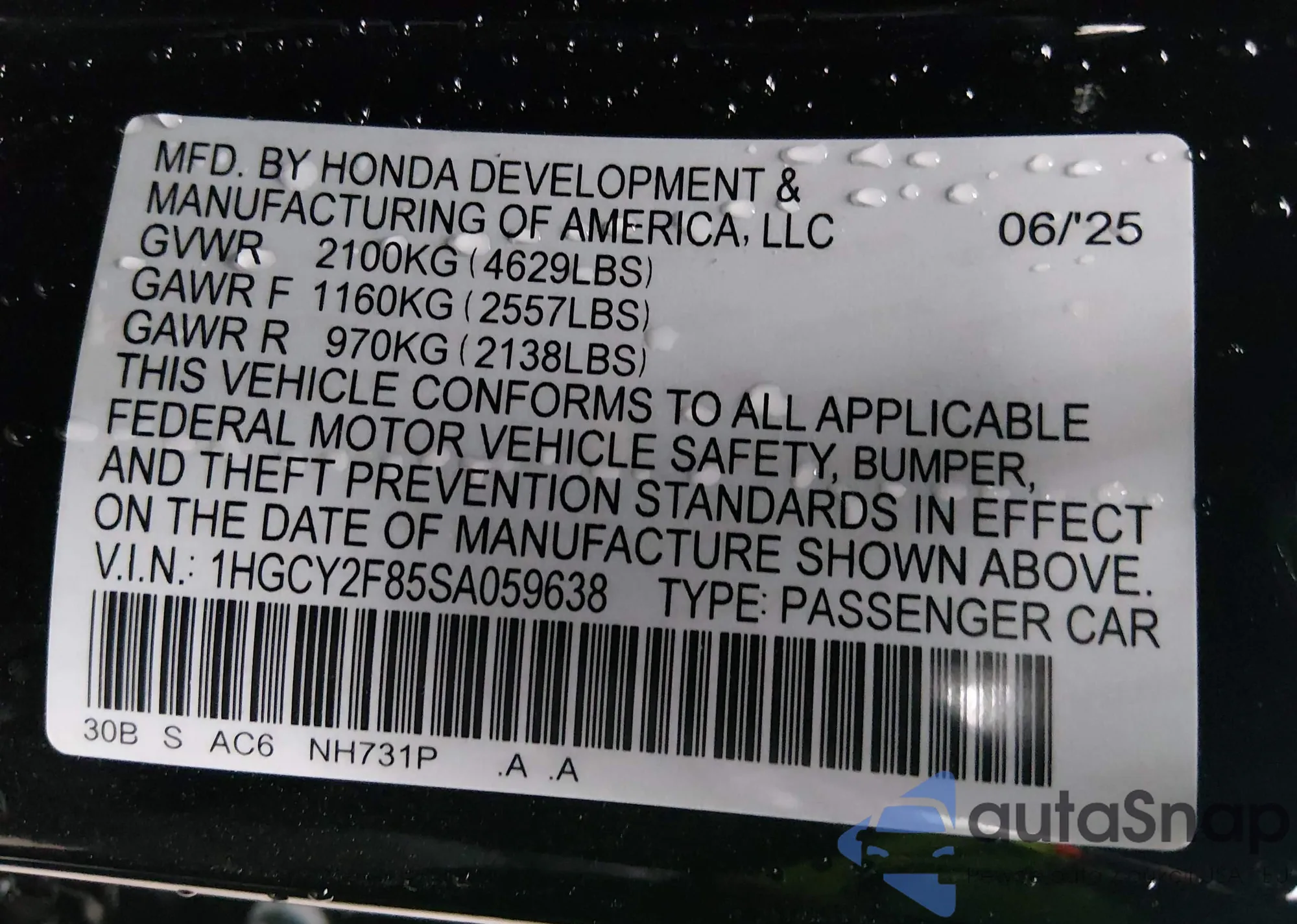Samochód Honda Accord 2025 (VIN 1HGCY2F85SA059638) nie był wcześniej licytowany. Dokumenty są czyste, przebieg odpowiada lub jest niższy niż średnia rynku. Sprzedaje go firma ubezpieczeniowa – polecamy zakup. Dostawa do portu zajmie ok. 6–8 tygodni.