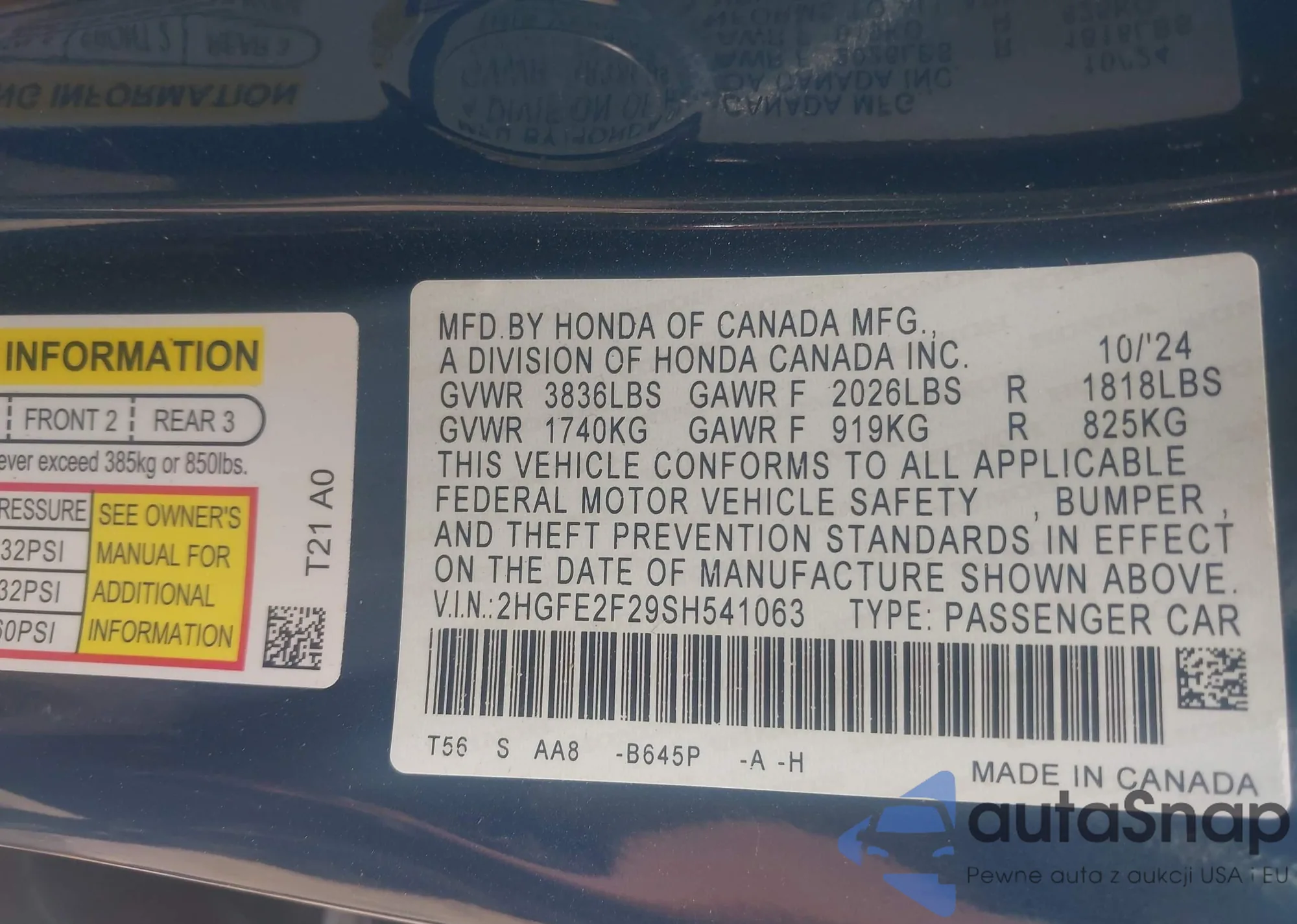 VIN: 2HGFE2F29SH541063