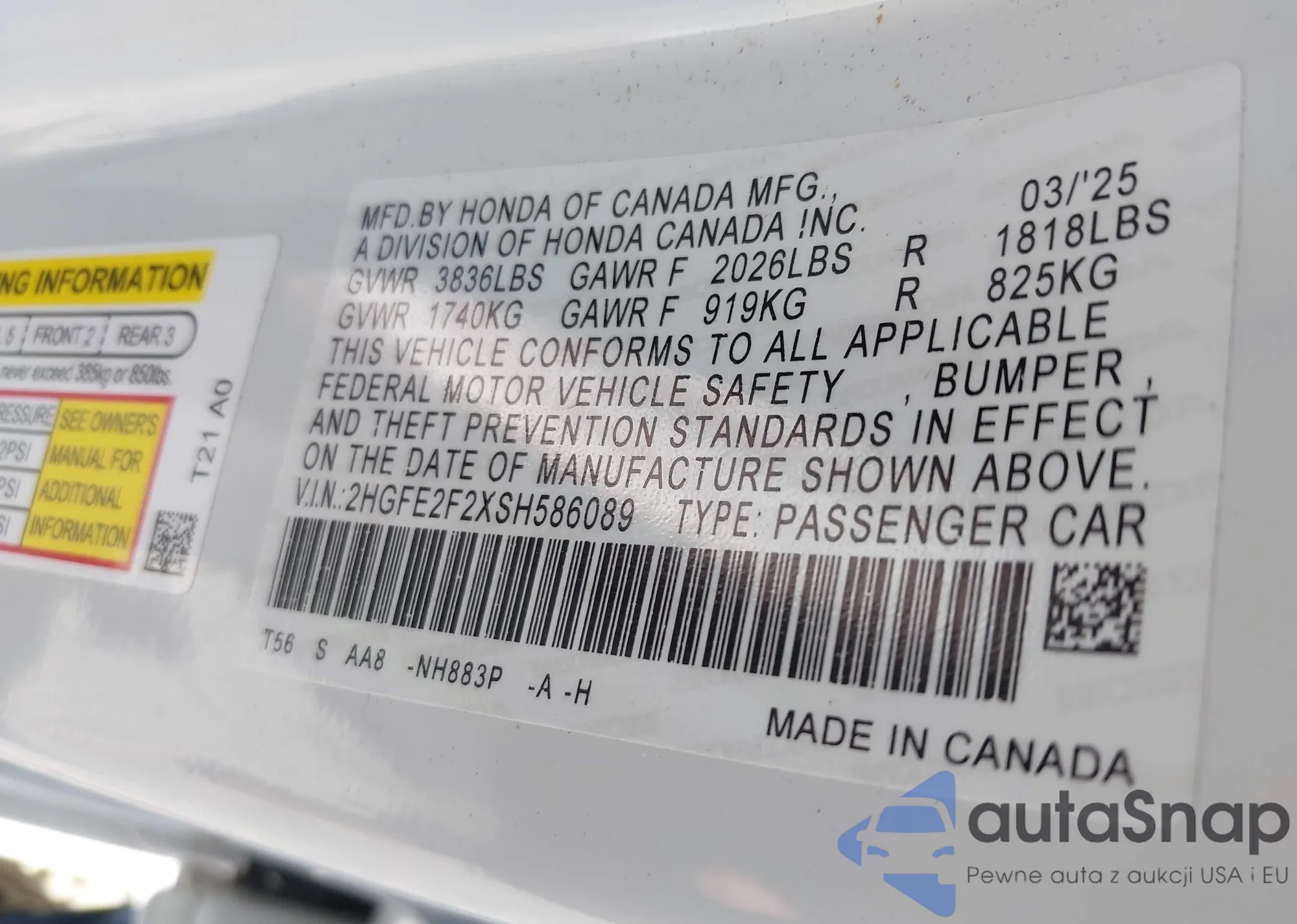 Honda Civic 2025 – Historia pojazdu (sprzedany na IAAI)