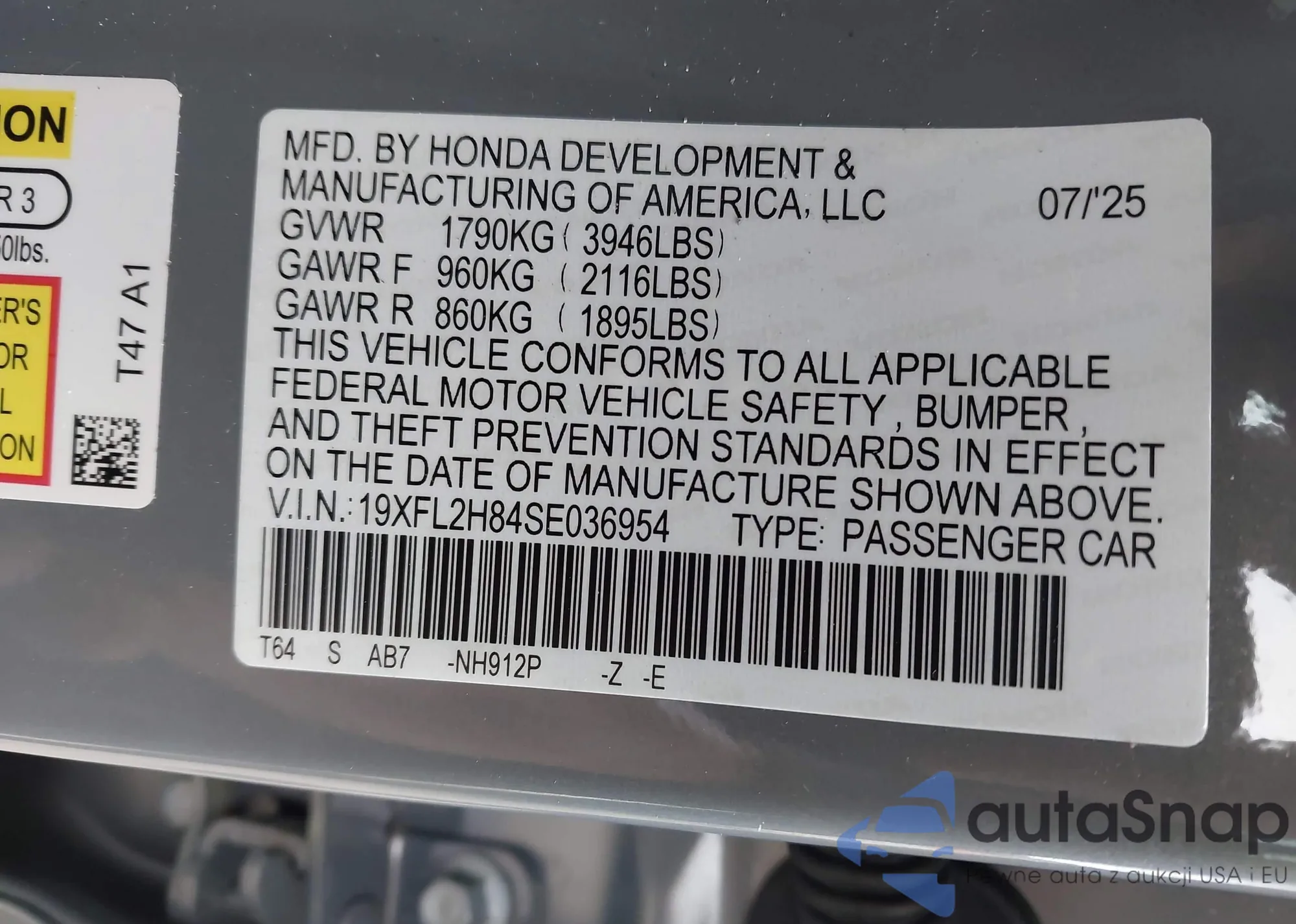 VIN: 19XFL2H84SE036954
