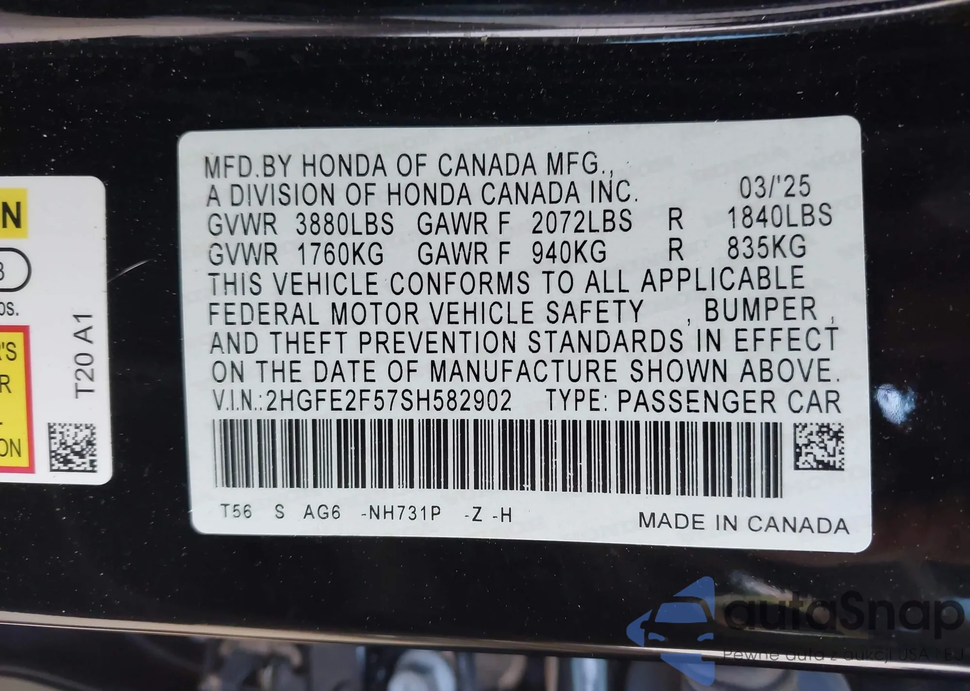 Honda Civic 2025 – Historia pojazdu (sprzedany na IAAI)