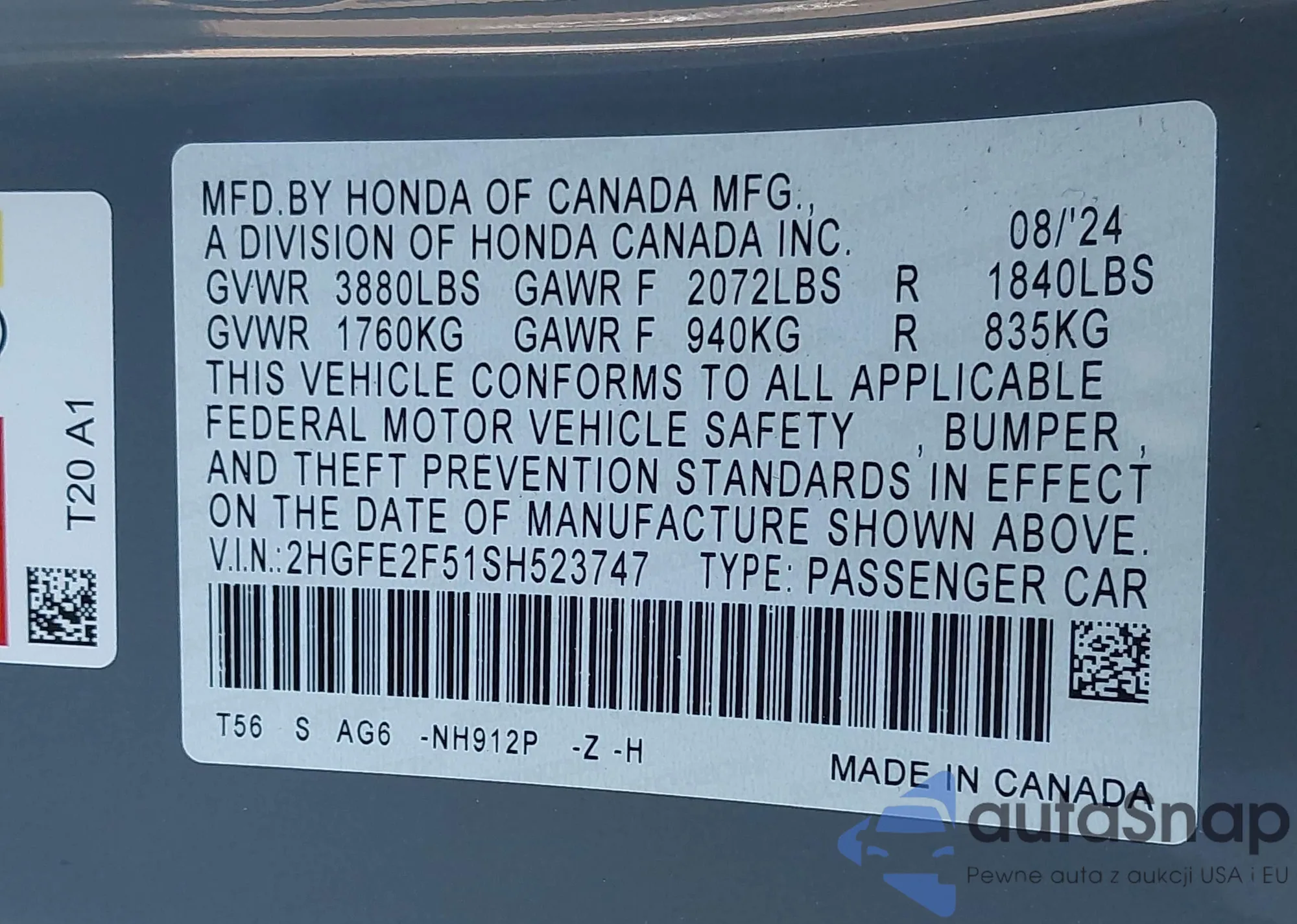 VIN: 2HGFE2F51SH523747