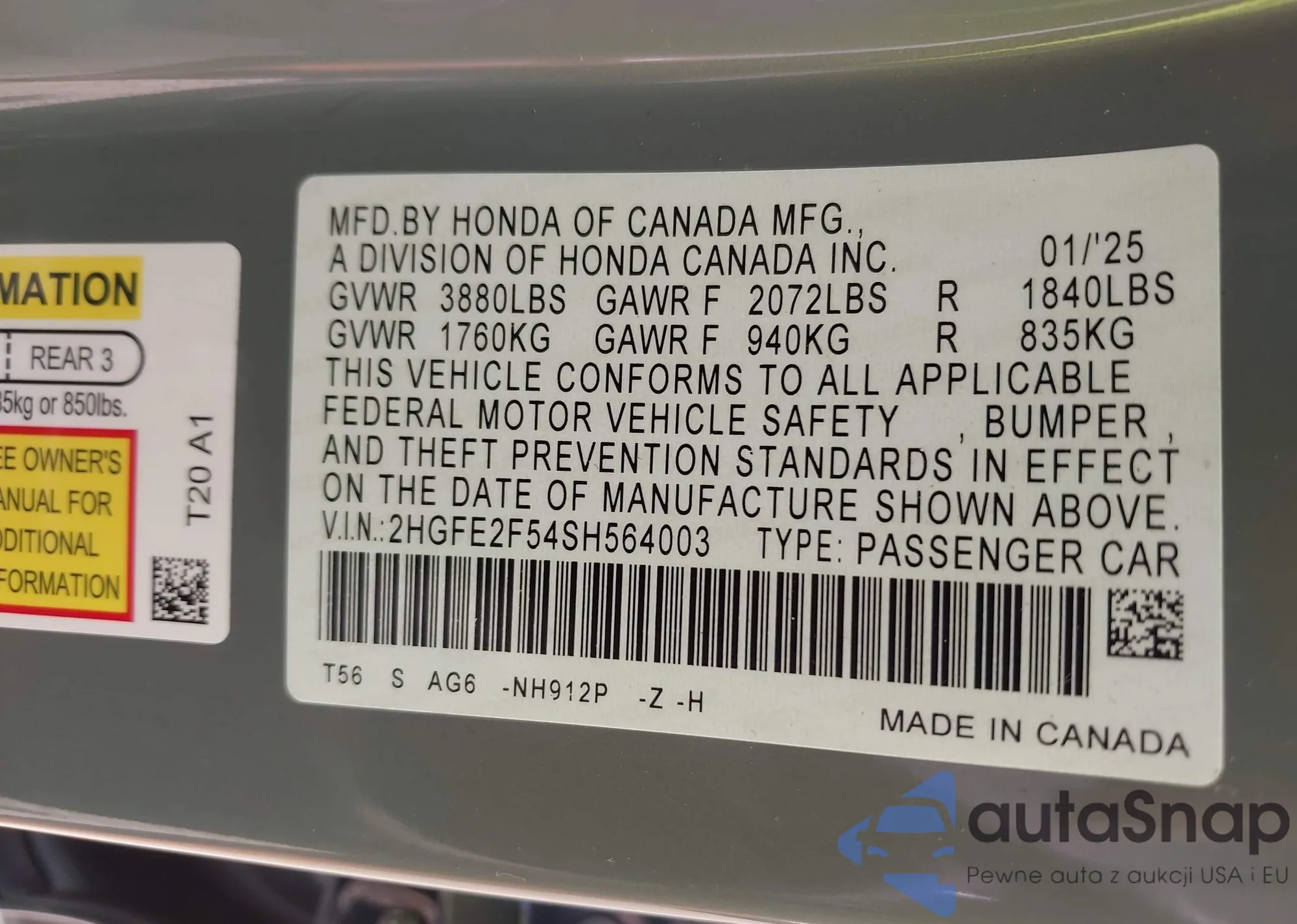 VIN: 2HGFE2F54SH564003
