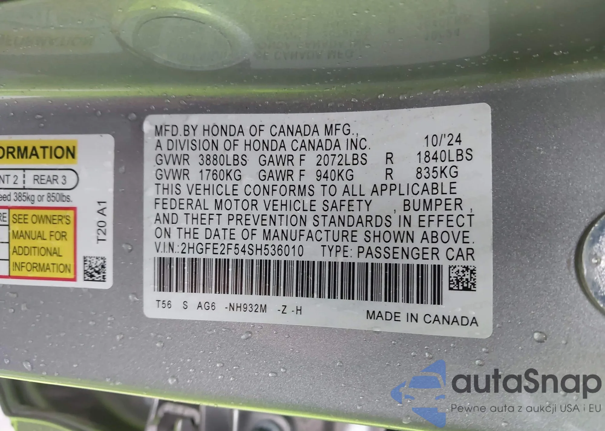 VIN: 2HGFE2F54SH536010