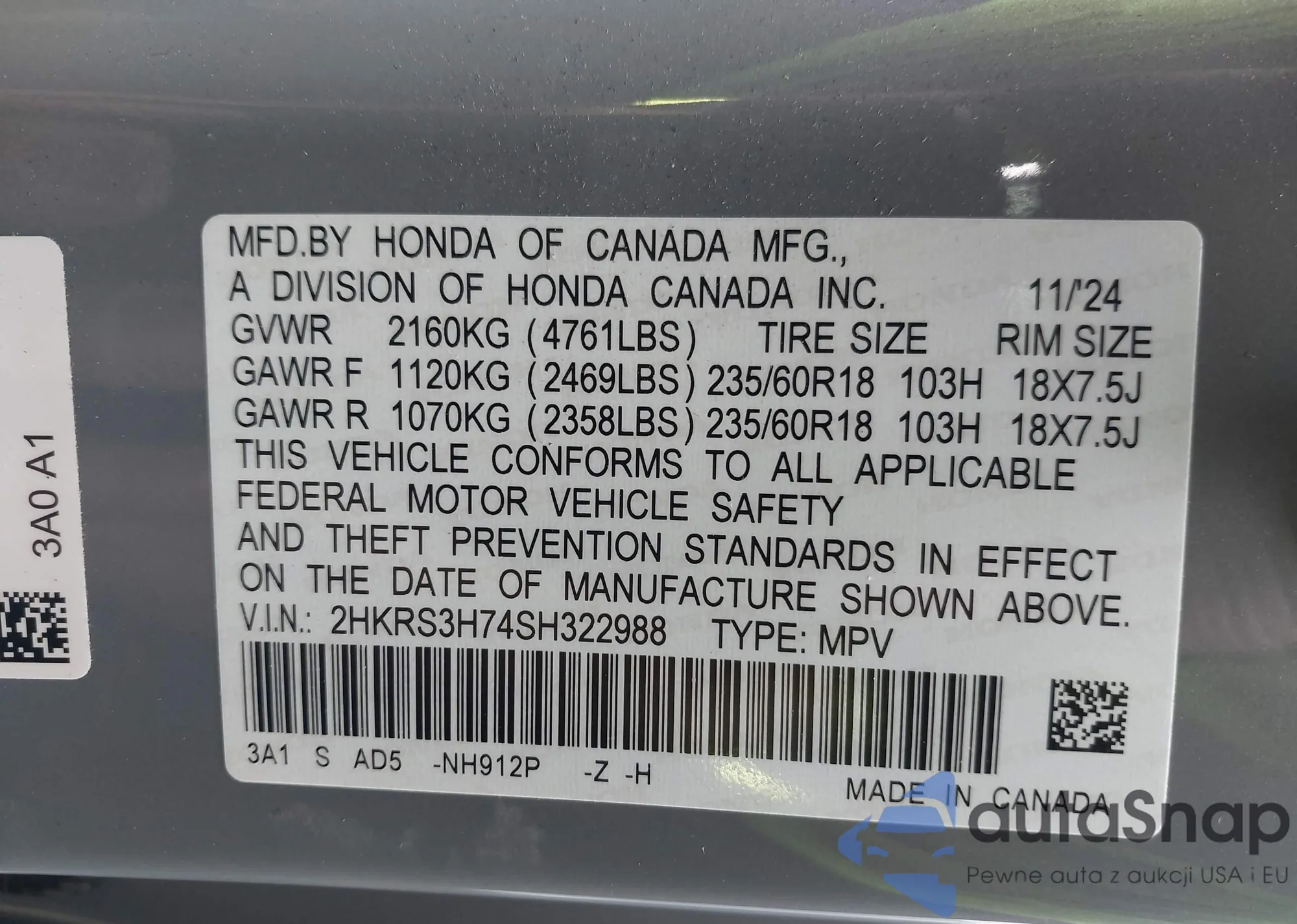 VIN: 2HKRS3H74SH322988