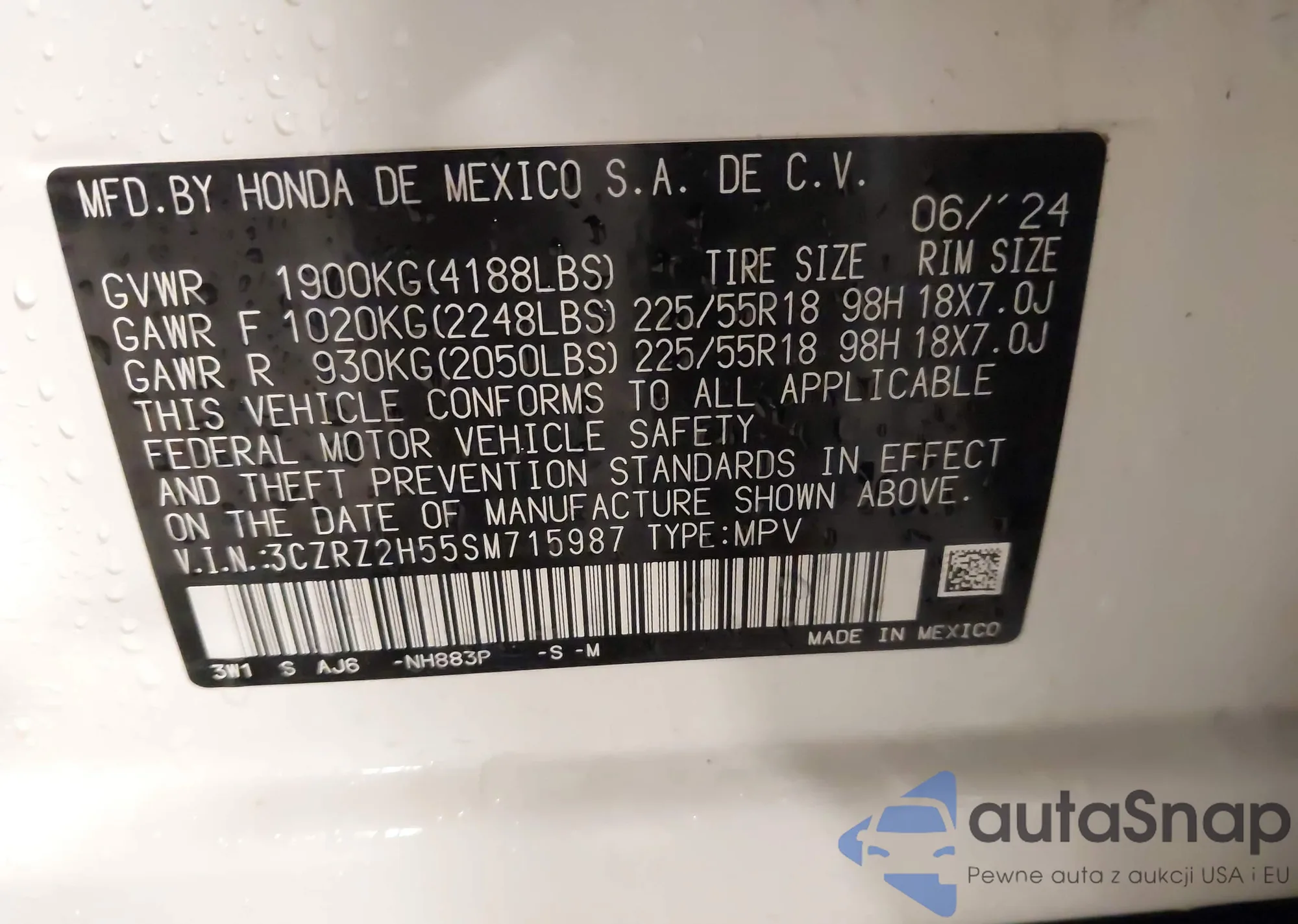 VIN: 3CZRZ2H55SM715987
