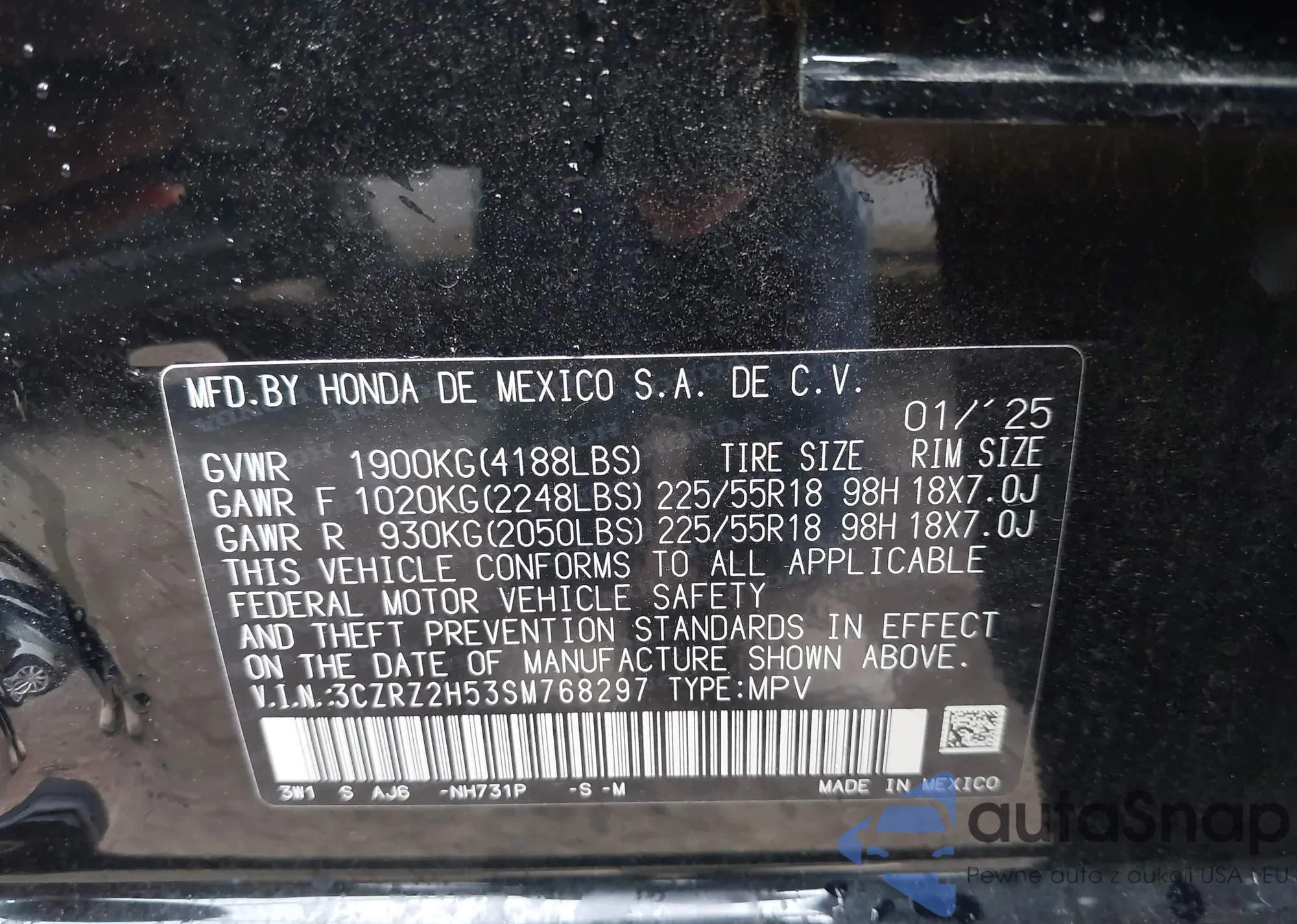 VIN: 3CZRZ2H53SM768297